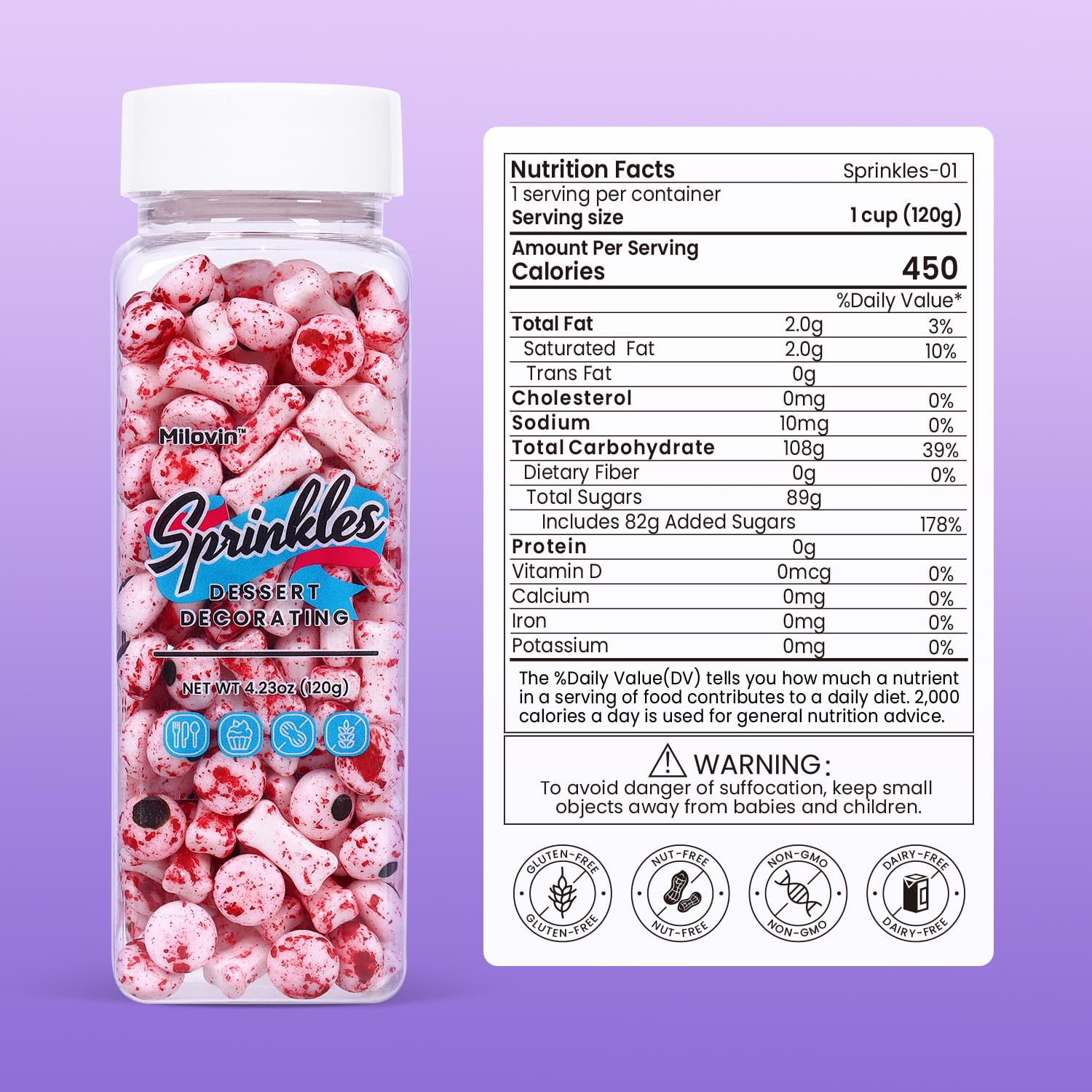 - High Quality and Safe: Made with food-grade ingredients. Edible, Nut-free, Dairy-free, Non-GMO. Our candy sprinkles meet American food standards and guard your and your family's health
