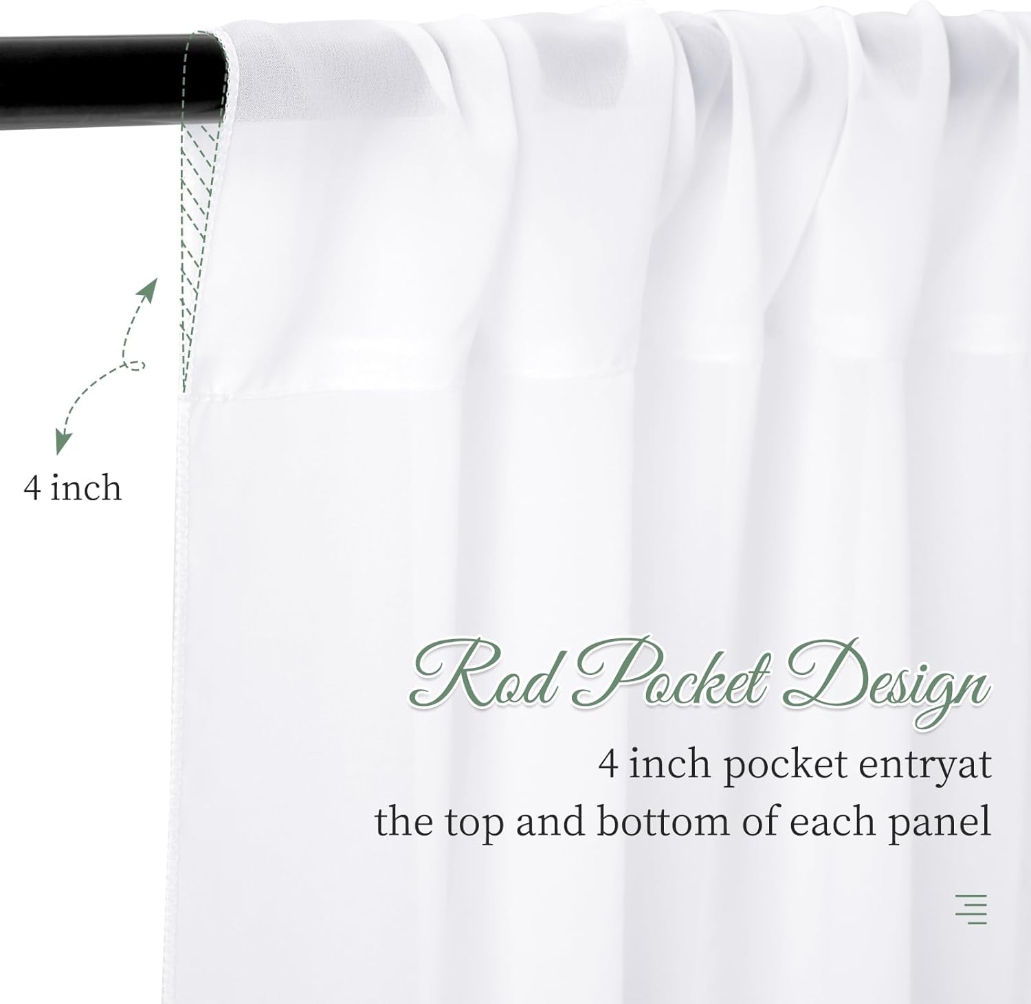 - 【Romantic Sheer Arch Drapes】The wedding ceiling curtains are finished with firm and exquisite stitching in all margins, which are airy and lightweight; here is a 4 inches pocket for rod or pole entry at the top and bottom of each panel creating beautiful draping. This sheer ceiling is also called as wedding decorations for ceiling, chiffon draping, tent draping fabric for wedding, event draping fabric, wedding wall covering, white stage curtains, etc.