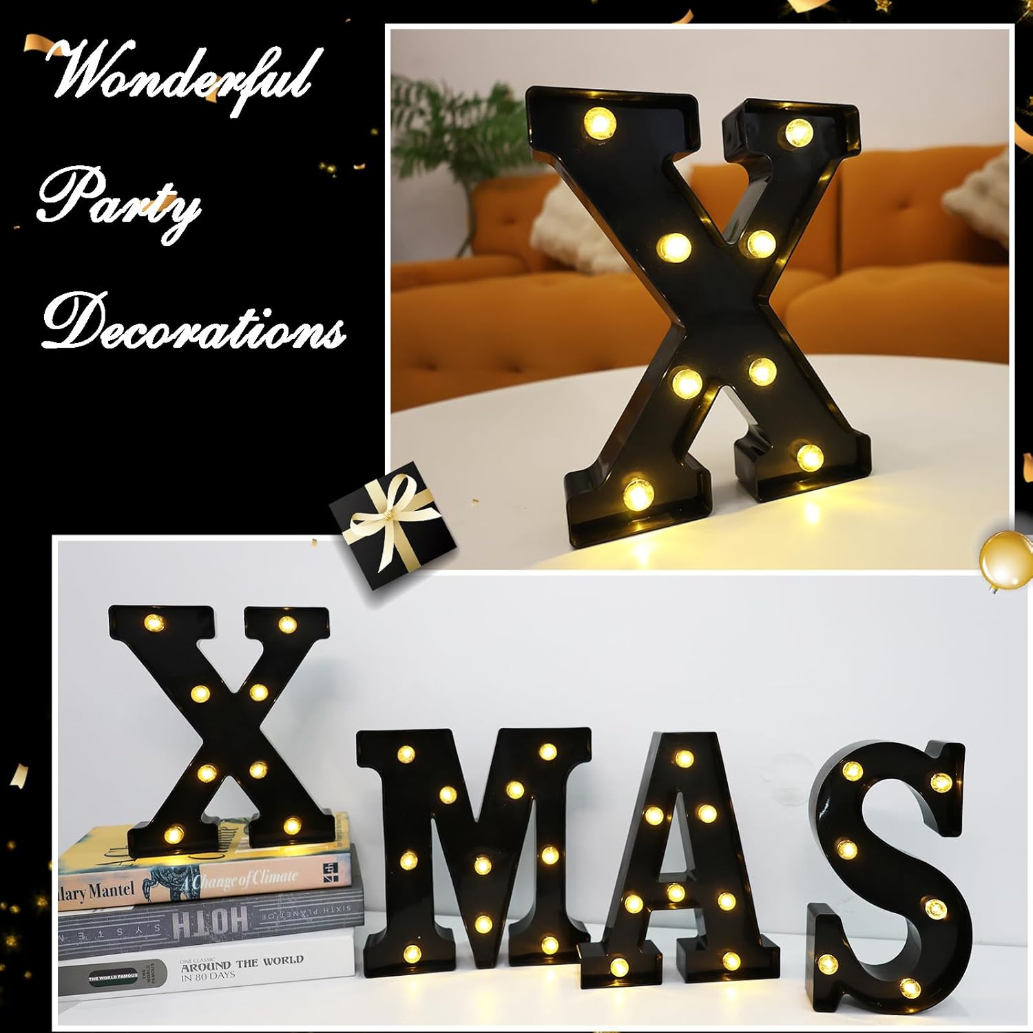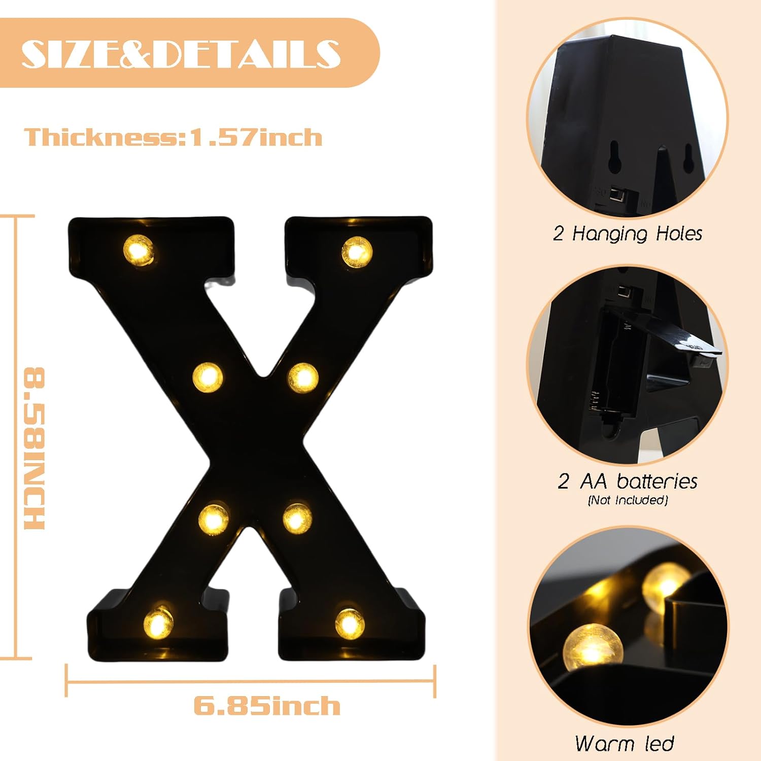 Led Marquee Letters, 8.58 Inch Black Light Up Letters, Small Led Letter Lights, Battery Powered Lighted Letterfor Table, Party, Birthday, Christmas Decor (Black, Letter X)