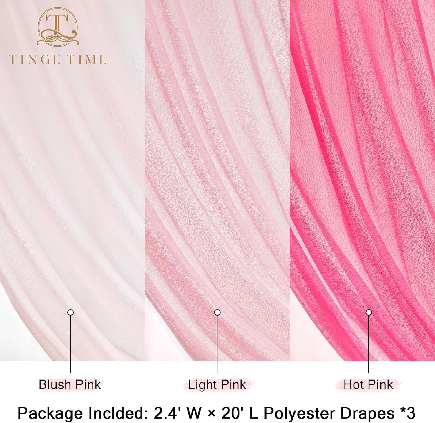 TINGE TIME 3 Panels Wedding Arch Draping Fabric, 30" x 20ft Hot Pink Chiffon Fabric Drapery Sheer Backdrop Curtain for Weddings Ceremony Party Decoration,Wedding Arch Drapes for Weddings Ceremony