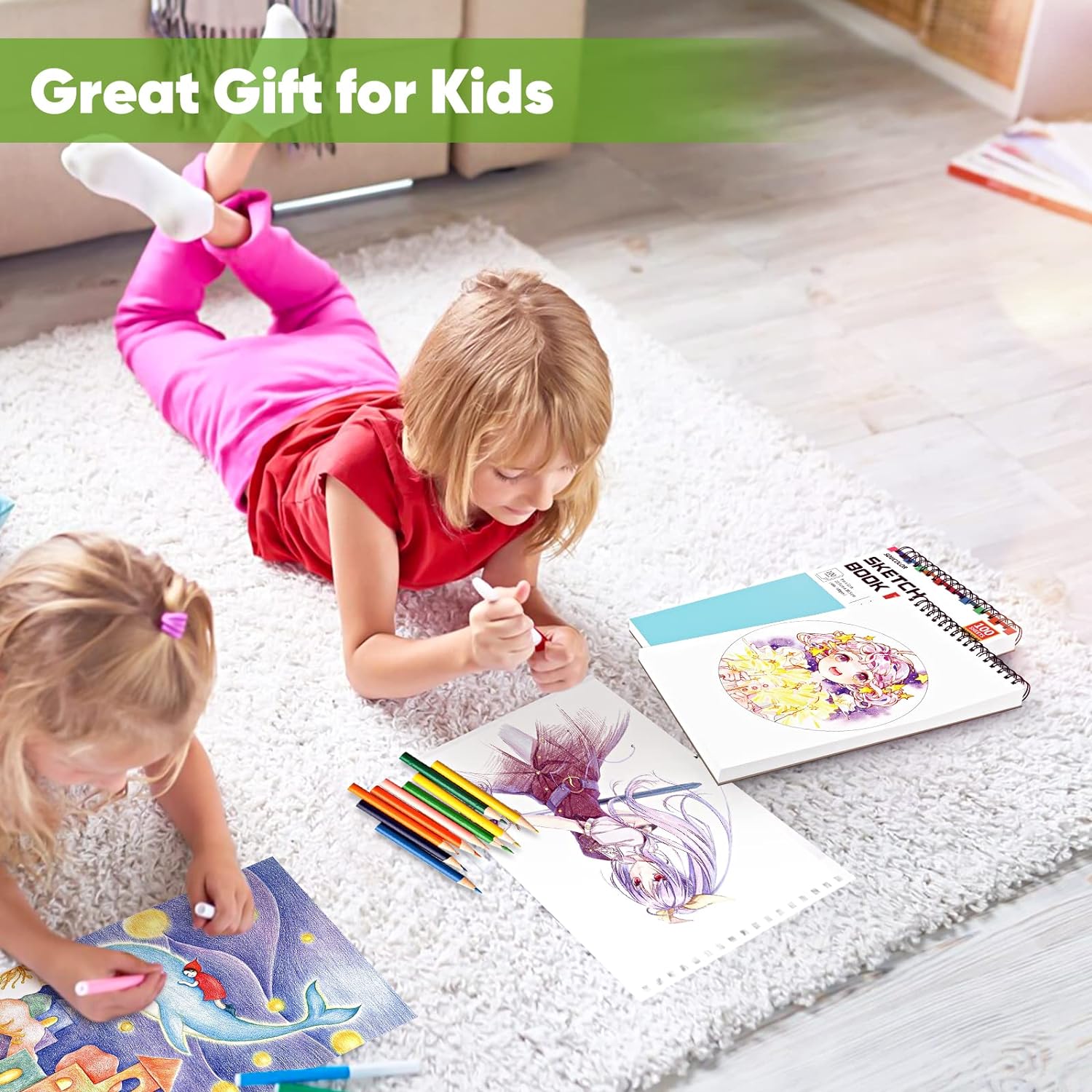 Drawing Set Sketching Kit, Pro Art Supplies, Soucolor 9" x 12" Sketch Book, 1-Pack 100 Sheets Spiral Bound Art Sketchbook for Colored Pencils, Graphite, Charcoal, Metallic Pencils, Sketching Pencils