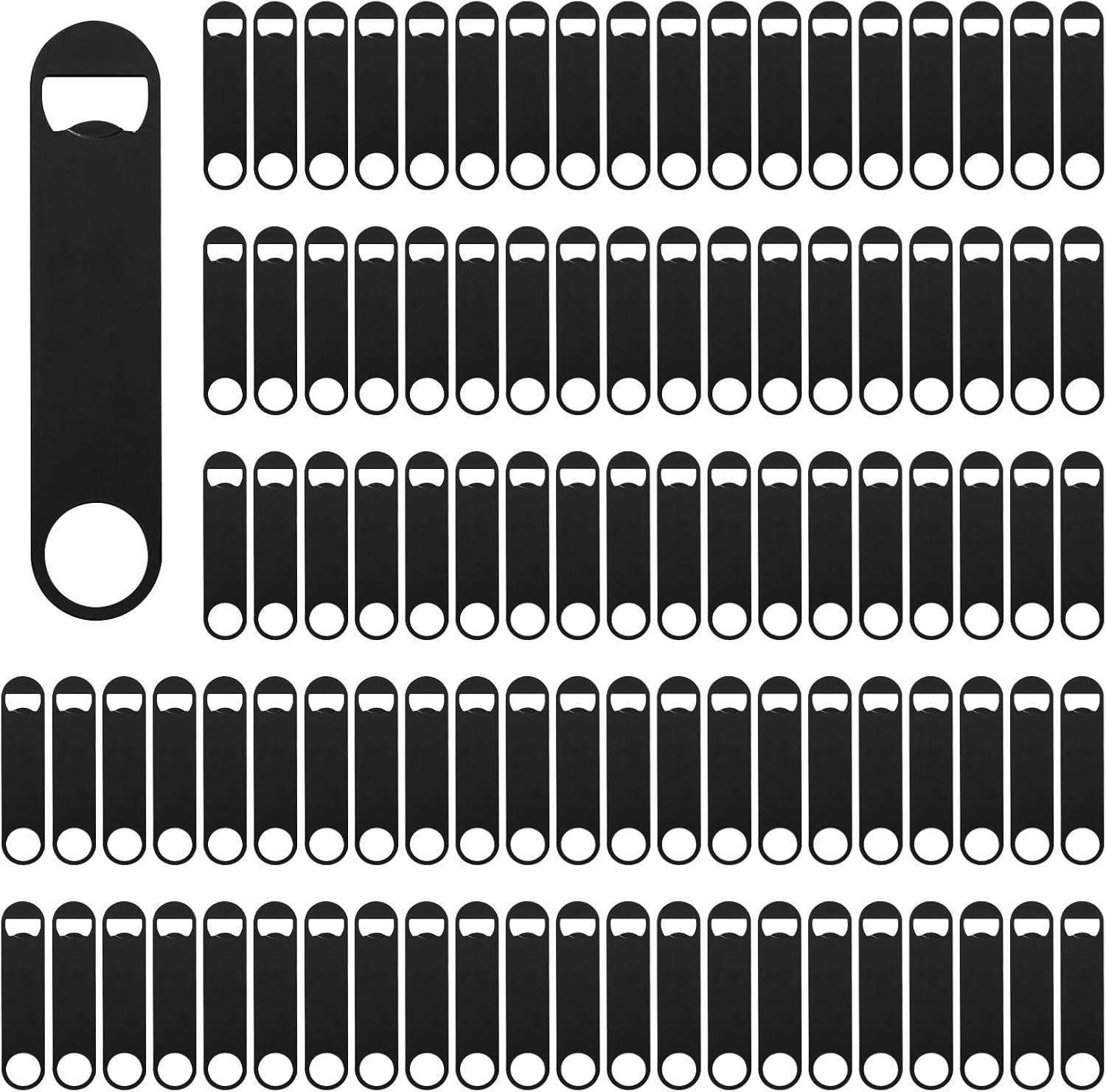 100 Pack Flat Beer Bottle Opener 5 inch Stainless Steel Flat Bottle Opener Black Beer Bottle Openers for Bartender Kitchen Bar Restaurant (5 Inch)