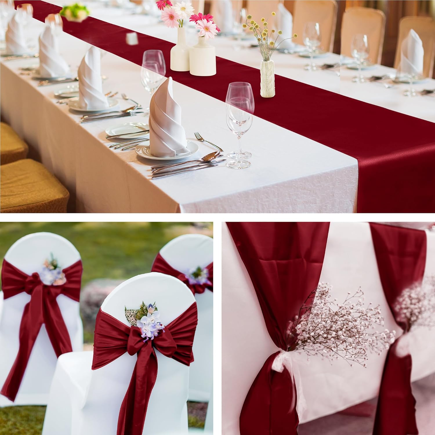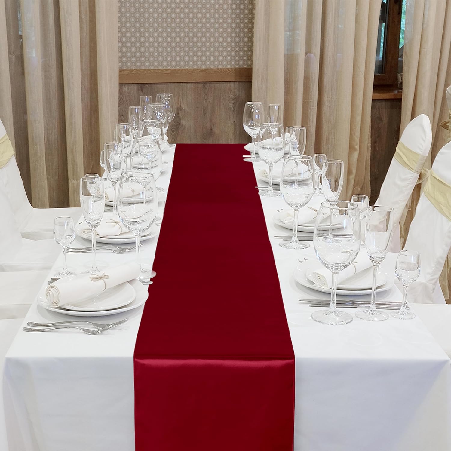 - Package content: you will receive 16 satin table runners in burgundy, sufficient quantity, classic color, suitable for wedding banquets and various parties, and will make your table decorations elegant and guests will love them