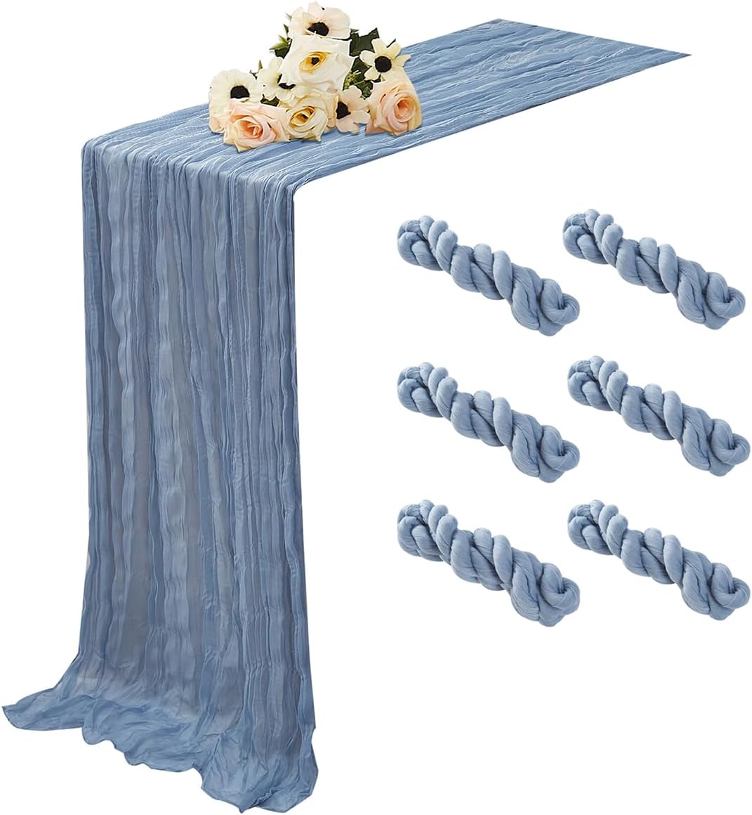 Dusty Blue 6 Pack Cheesecloth Table Runner 120 Inch 10 FT Boho Rustic Gauze for Wedding Baby Shower Party Farmhouse Summer Home Decor Washable