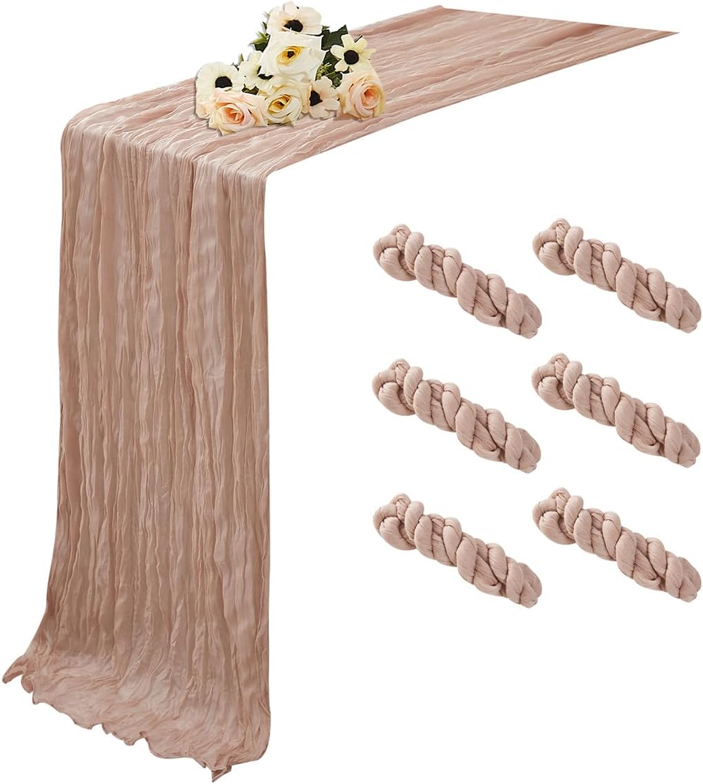 Nude 6 Pack Cheesecloth Table Runner 120 Inch 10 FT Boho Rustic Gauze for Wedding Baby Shower Party Farmhouse Summer Home Decor Washable