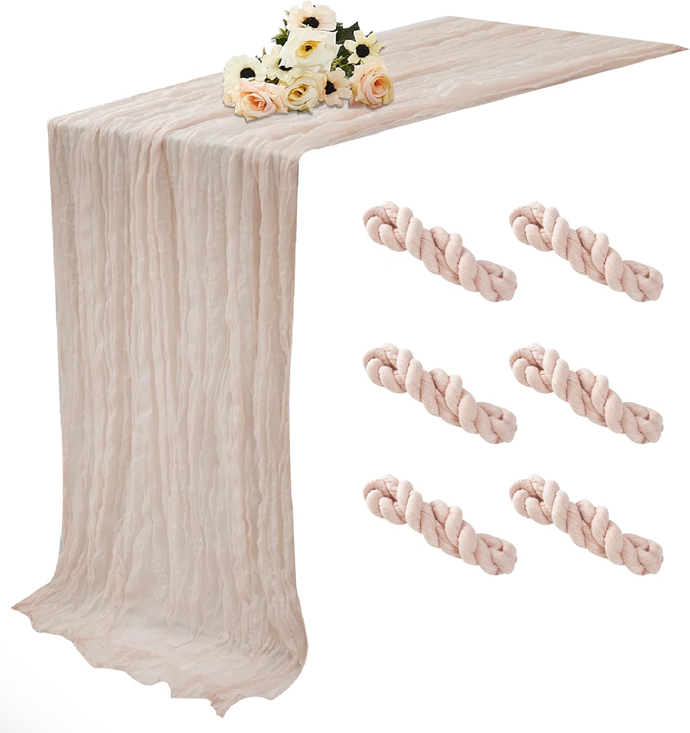 Dusty Pink 6 Pack Cheesecloth Table Runner 120 Inch 10 FT Boho Rustic Gauze for Wedding Baby Shower Party Farmhouse Summer Home Decor Washable