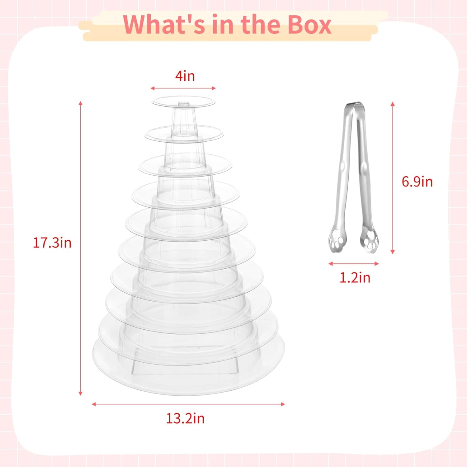 - Shape : Clear,10-Tiers