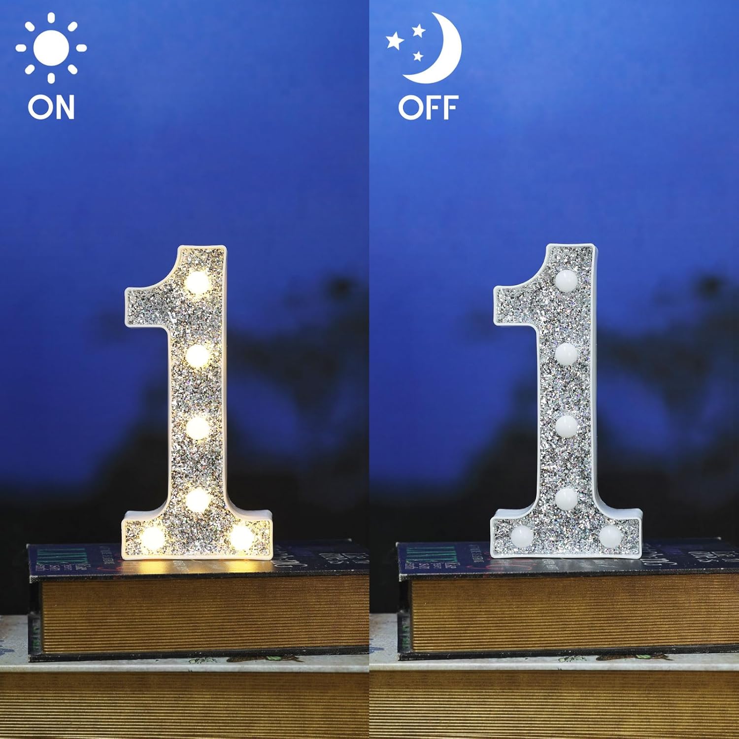 Light Up Letters, Marquee Light Letters for Table Decorations, Glitter Light Up Signs for Prom, Events, or Engagement Party Decor, Featuring Alphabet & Number Lighted Letters, Number 1
