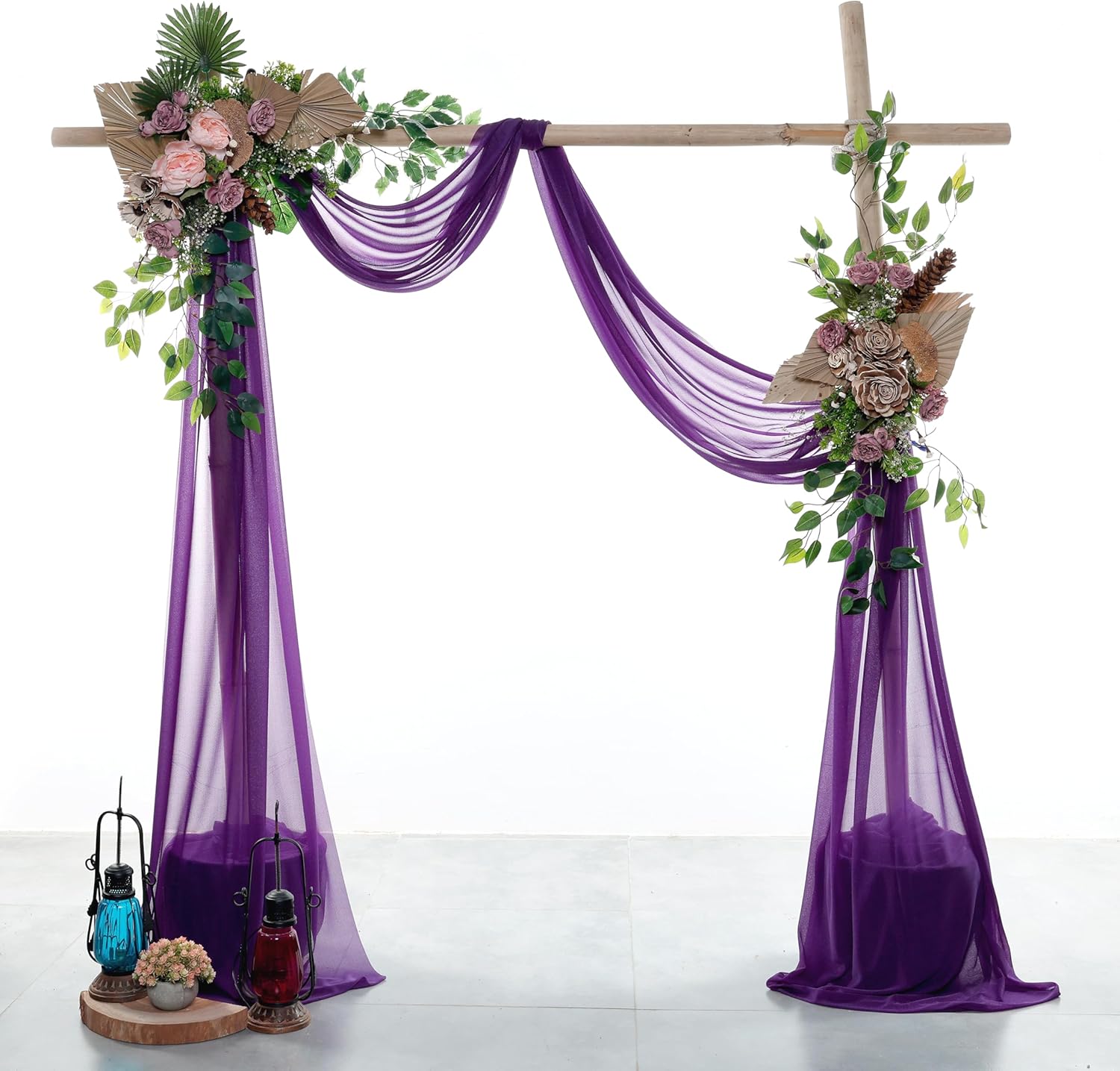 VDS Pack of 2 Panel (30 Inch X 40 Feet) Wedding Arch Draping Fabric Sheer Chiffon Fabric Drapery for Wedding Ceremony Reception Swag Backdrop Canopy Chuppah ARBO Altars Decoration (Purple)
