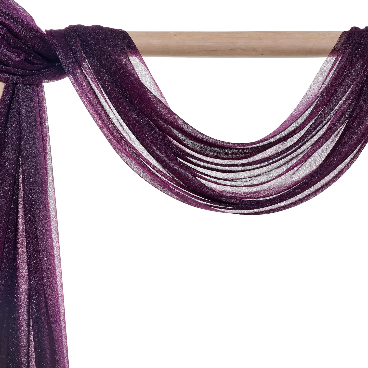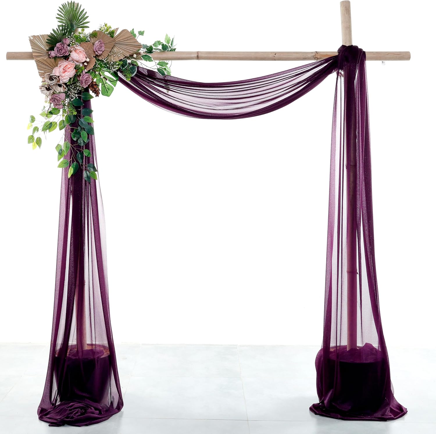 VDS Pack of 1 Panel (30 Inch X 40 Feet) Wedding Arch Draping Fabric Sheer Chiffon Fabric Drapery for Wedding Ceremony Reception Swag Backdrop Canopy Chuppah ARBO Altars Decoration (Eggplant)