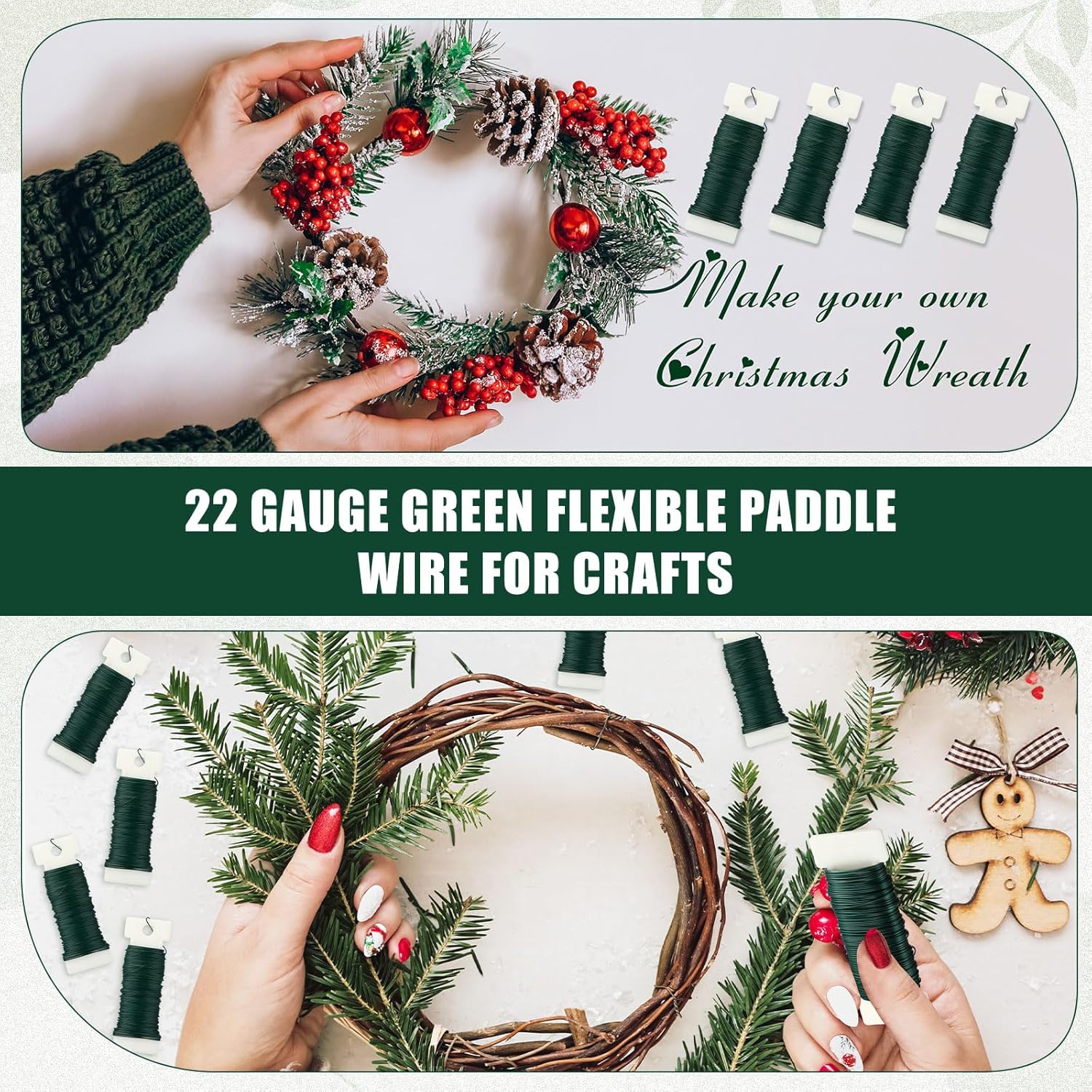 Ferraycle 16 Pack Green Floral Wire 38 Yards 22 Gauge Flexible Paddle Florist Christmas Green Wire for Crafts Christmas Wreaths Tree Garland and Floral Flower Arrangements