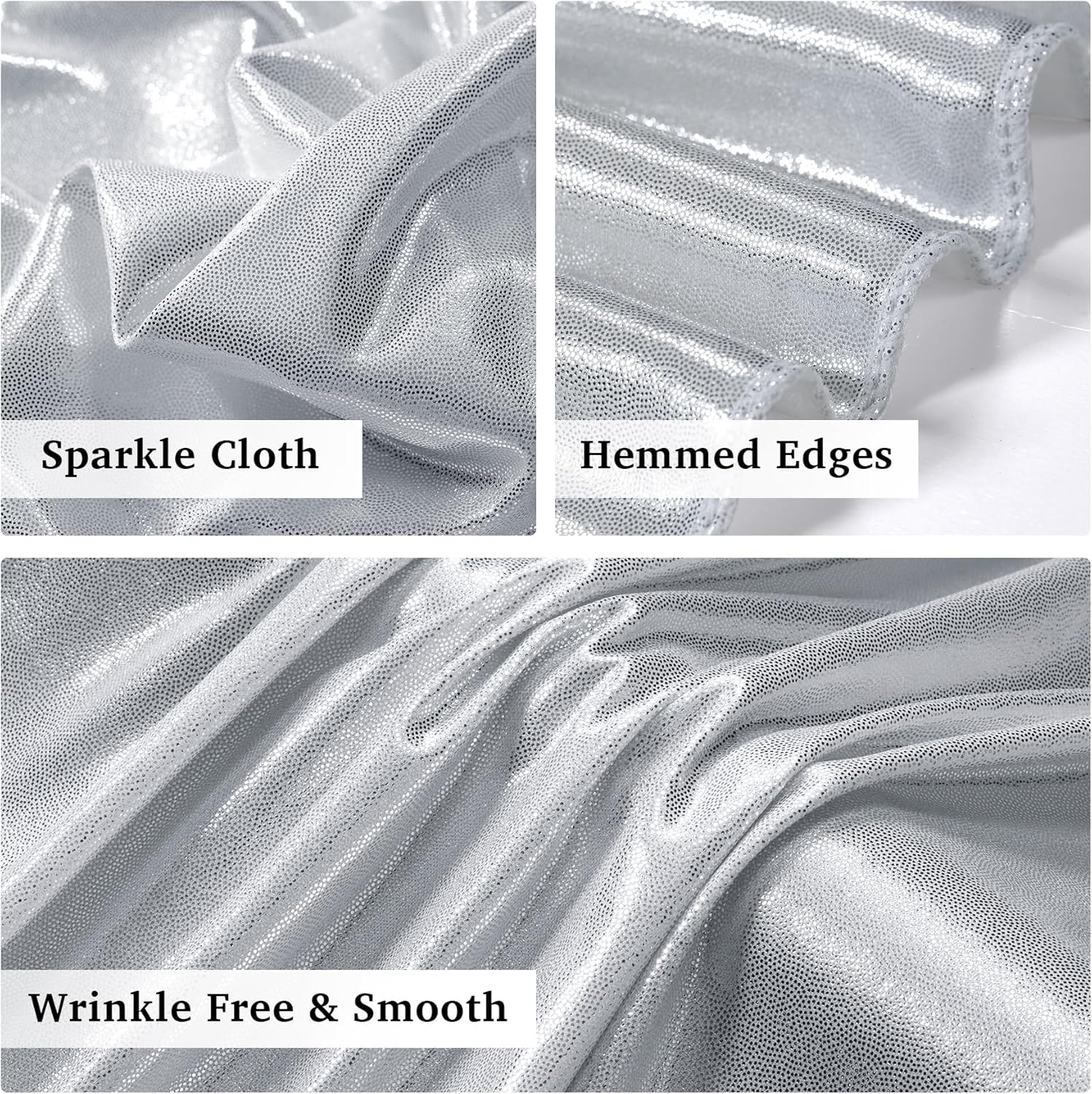 - Glitter Cloth: Made of soft and smooth polyester fabric. Backdrop drapes with bronzing technology is shiny and sparkly. No Sequin Fall OF.