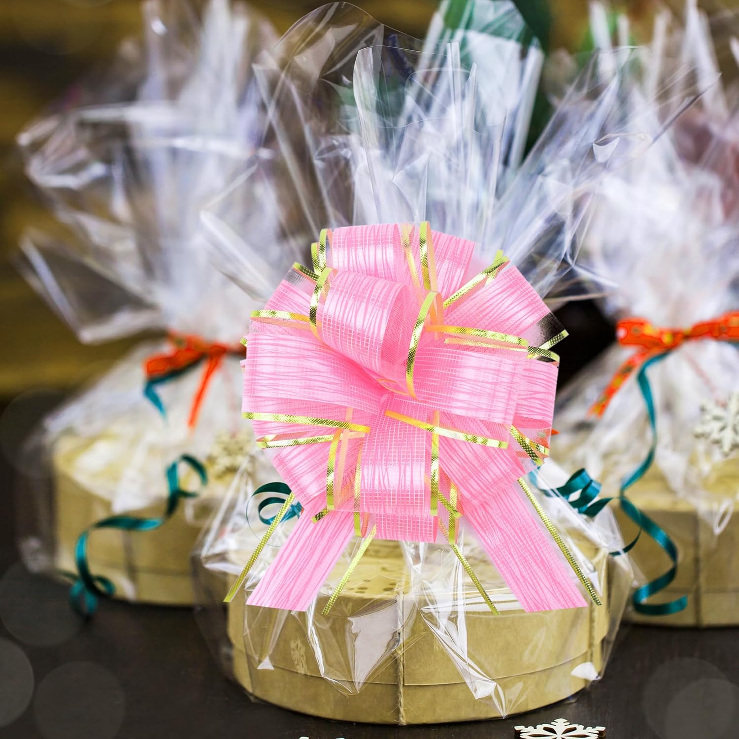 - WIDE APPLICATIONS: Our wrapping pull bows are suitable for gift box packaging, flower packaging , party decoration, wedding scene layout, Holidays decorations like Christmas, Mother’s Day, Father’s Day, Thanks Giving Day, New Year. You can also the pull bows to decorate your birthday party, wedding ceremony, baby shower party, graduation ceremony, opening ceremony etc.