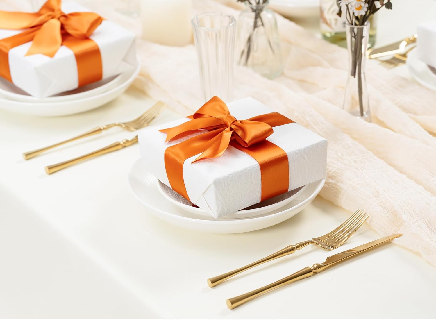 Satin Ribbon 1-1/2 Inch x 50 Yards Double-Faced Ginger Polyester Ribbons for Crafts Flower Bouquet Gift Wrapping Wedding Invitation