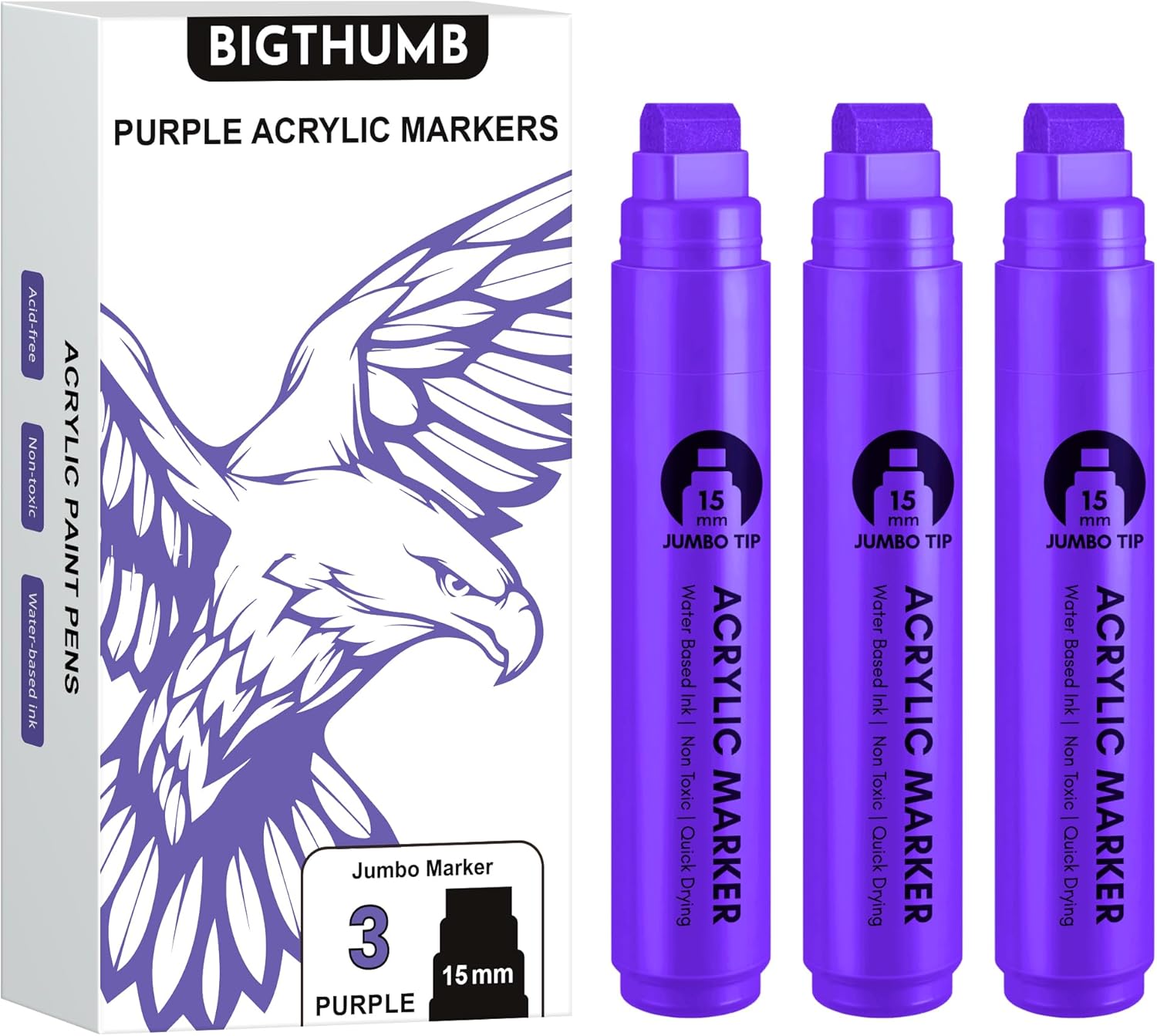 - Jumbo Permanent Markers Purple Set: BIGTHUMB jumbo purple markers are made with the highest-quality non-toxic, acid-free, no odor, no-leakage water-based acrylic ink that is waterproof, quick dry, long-lasting, and smooth ink flow. Each fat permanent marker conforms to ASTM d-4236 and EN-71 safety standards.