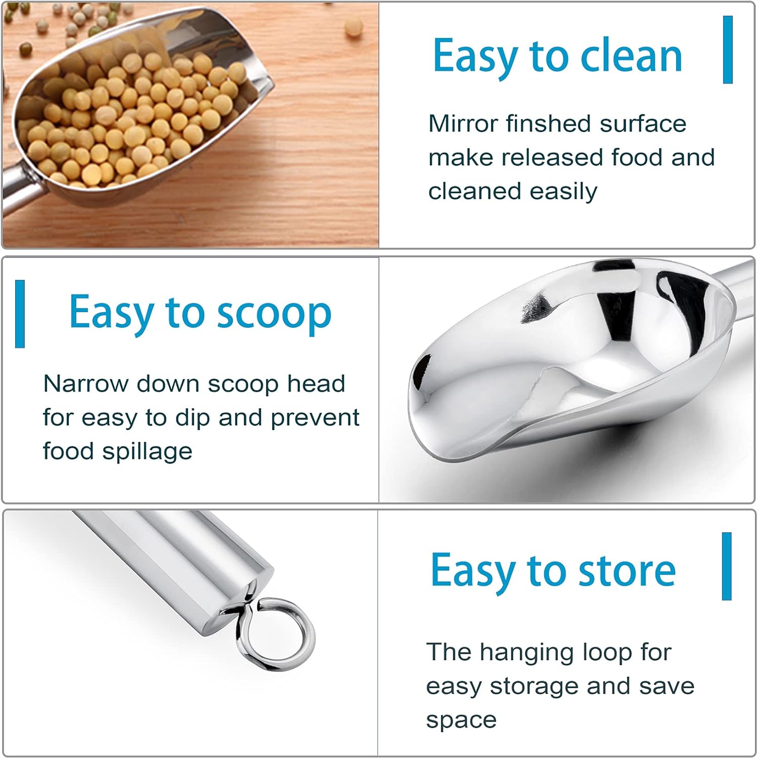 - 【Easy Clean】Stainless steel small ice scoop is polished to mirror finished, Easily releasing food residues and make clean up a breeze by hand, And also dishwasher safe, Saving your precious time and labor