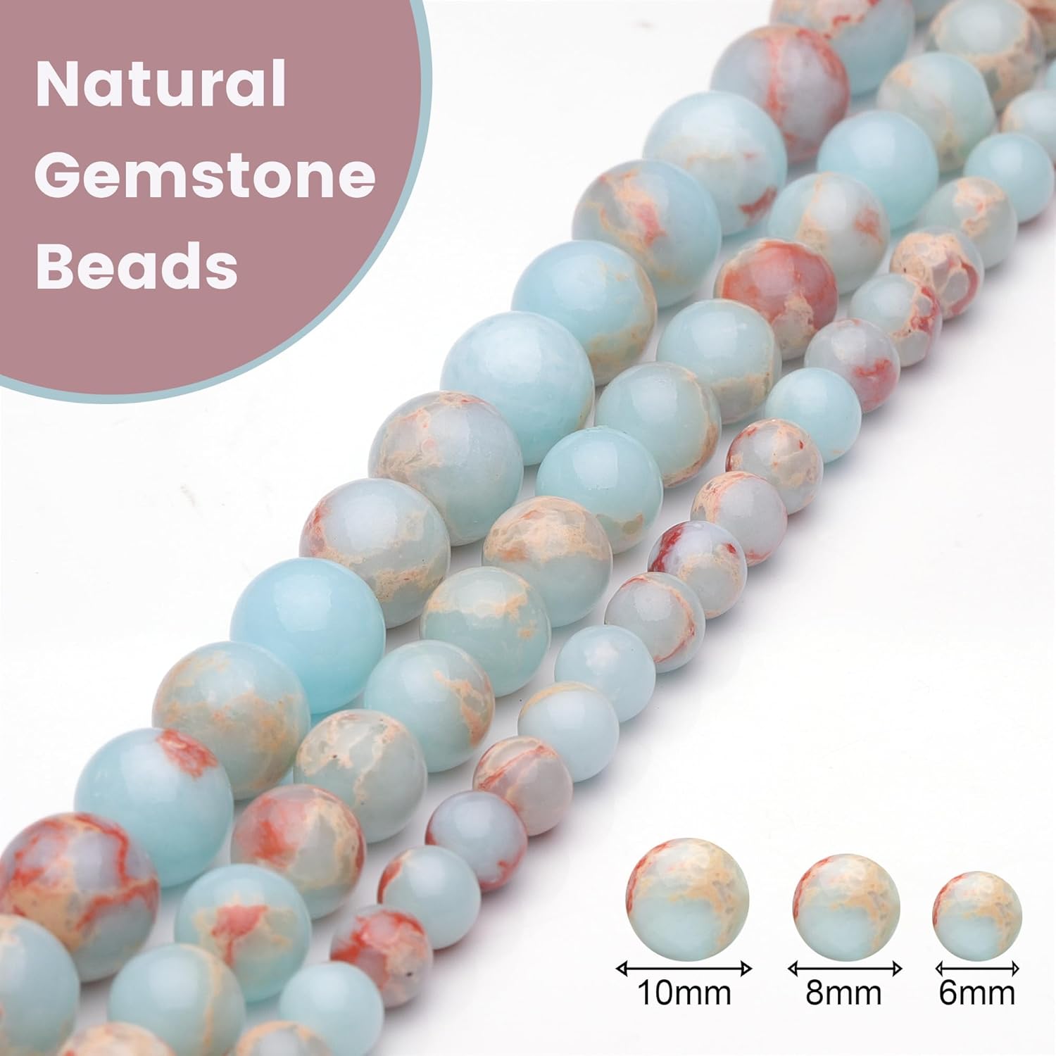 8mm Natural Stone Beads for Jewelry Making,Sky Blue Jasper Polished Smooth Round Gemstone Beads for Bracelet Necklace 15 Inch