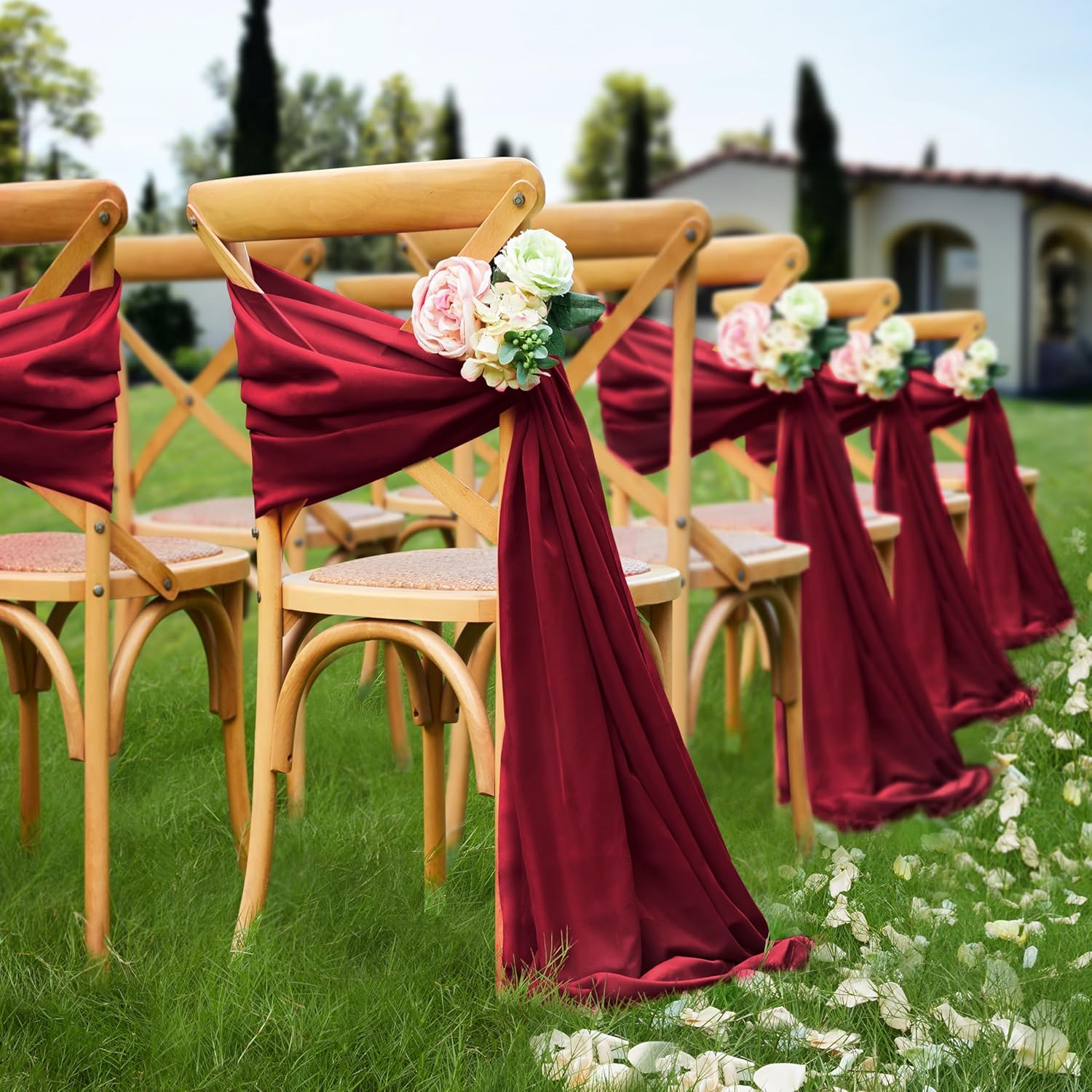 - WIDE APPLICATION RANGE: With neatly cut edges and rich colors, wedding arch drapes add a sense of happiness by using them with garlands, banners, display boards and other wedding decorations. It can also be used as chiffon table runners, chiffon tablecloths, chiffon chair sashes.