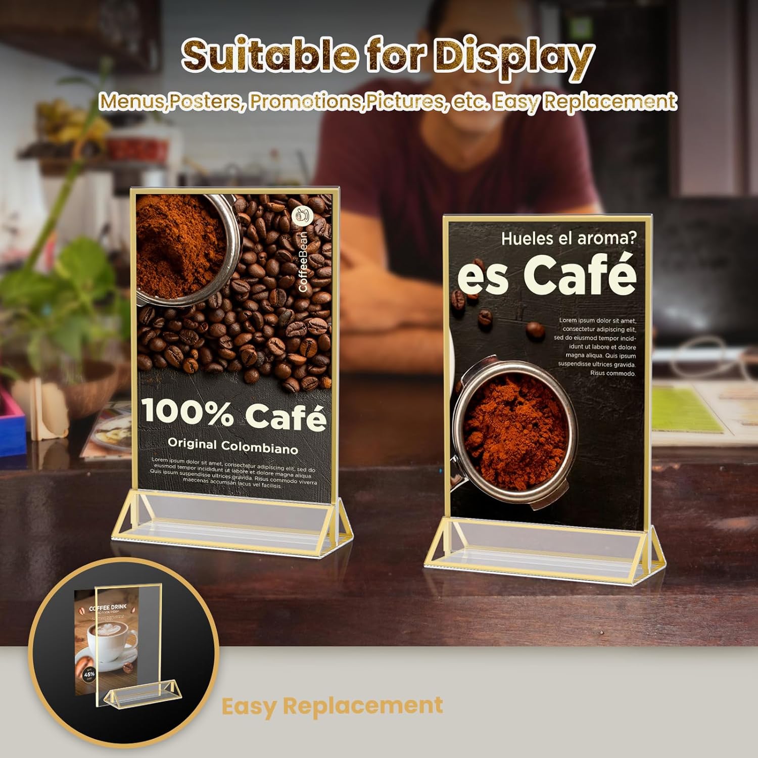 - 【EASY TO ASSEMBLE】These gold picture frames are incredibly easy to install. Simply open the double-sided display frame, place your sign inside, and insert the holder into the base. Plus, the detachable design makes them convenient to store and transport, too.