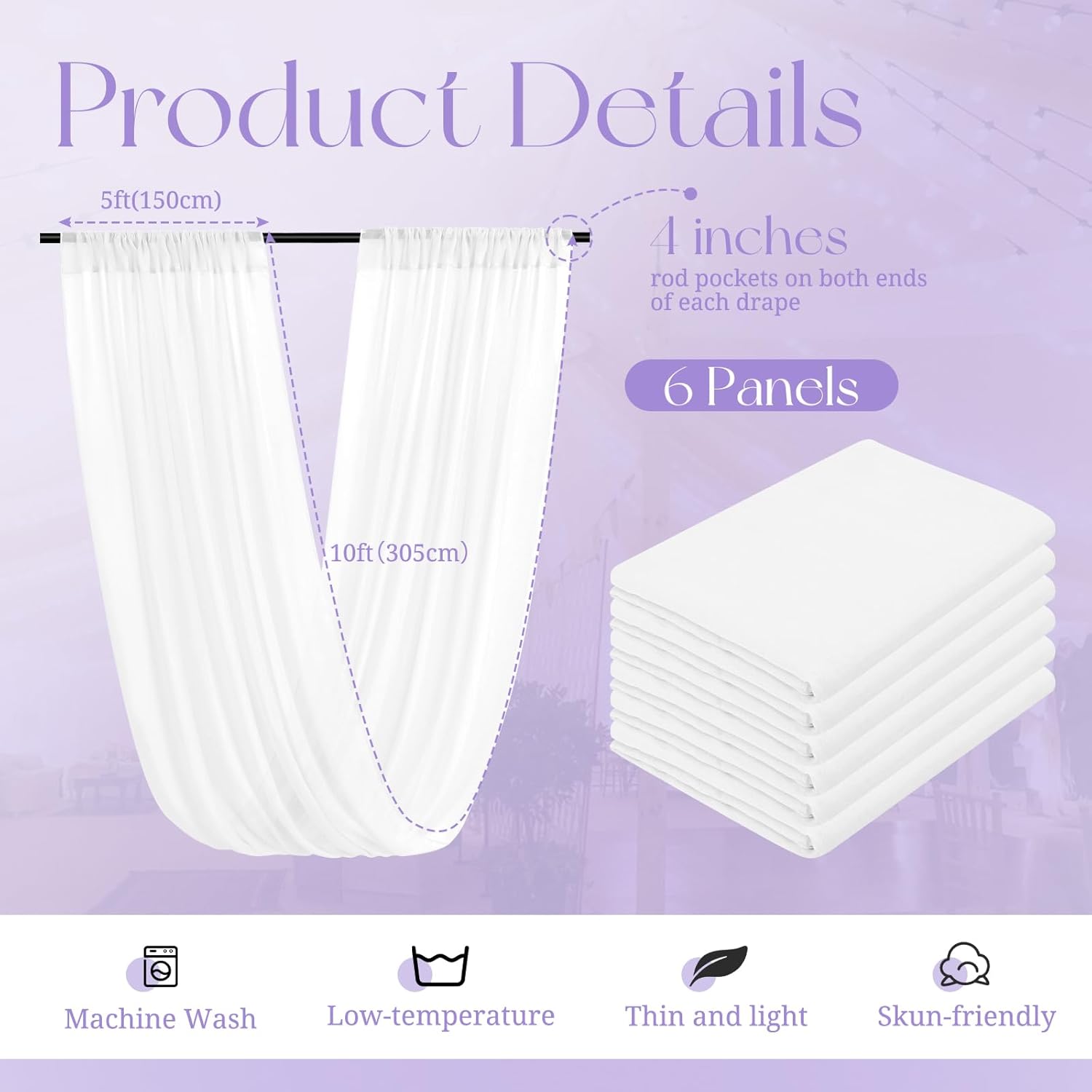 6 Panel White Wedding Drapes, 5ftx10ft Cheesecloth Sheer Fabric Curtains for Wedding Arch, Romantic Ceiling Decorations