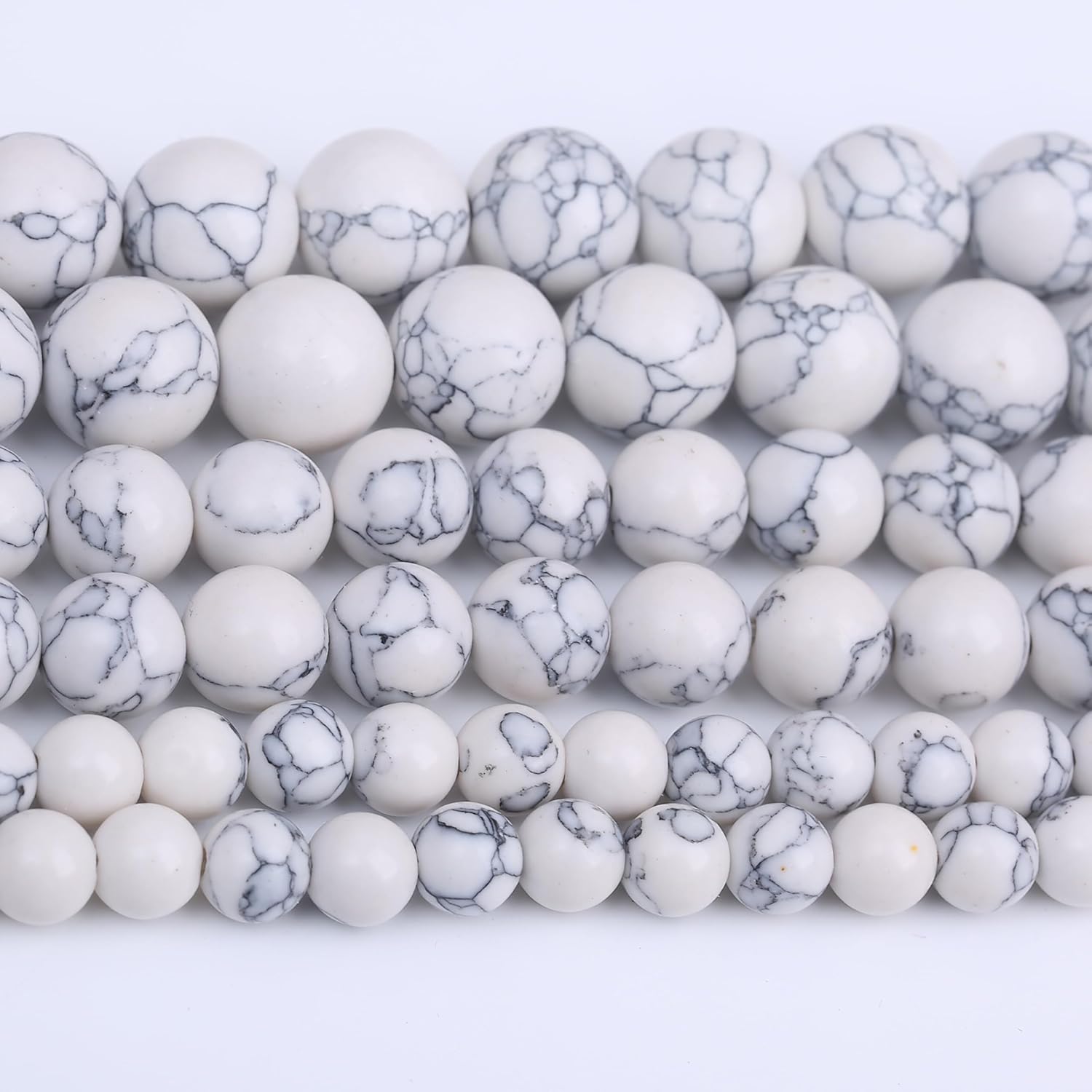 Natural White Turquoise Stone Beads Gemstone Round Crystal Energy Jade Beads Stone Beads for Jewelry Making DIY Bracelet Necklace Jewelry Making 1 Strand 15.5inch 45PCS 8MM