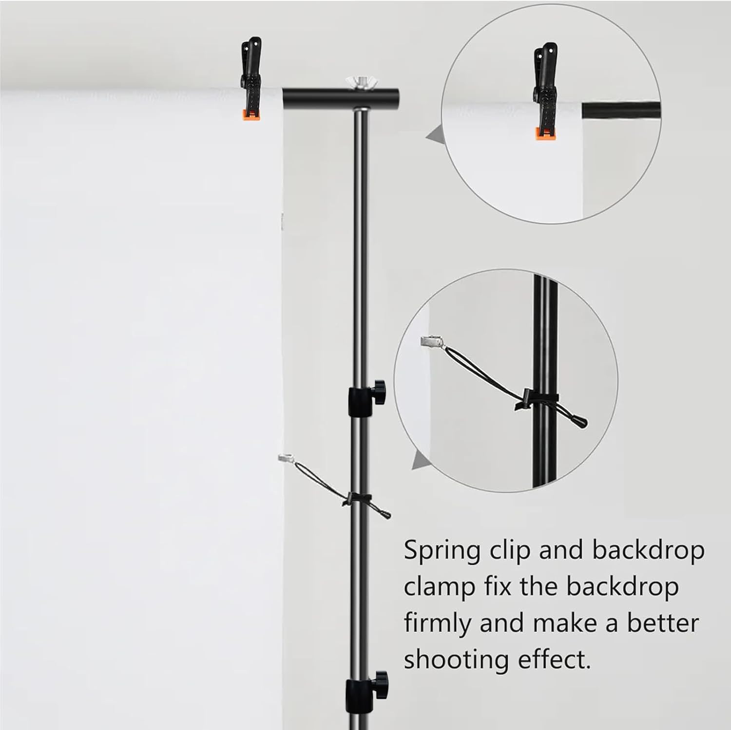 - 【Better Effect with Accessories】Photo backdrop stand kit includes 8 backdrop clamps, 8 spring fixing clips and 2 sandbags. Spring clips and backdrop clamps can fix the backdrop tightly and make a better shooting effect. The sand bag can be used to add weight for stability in windy conditions.