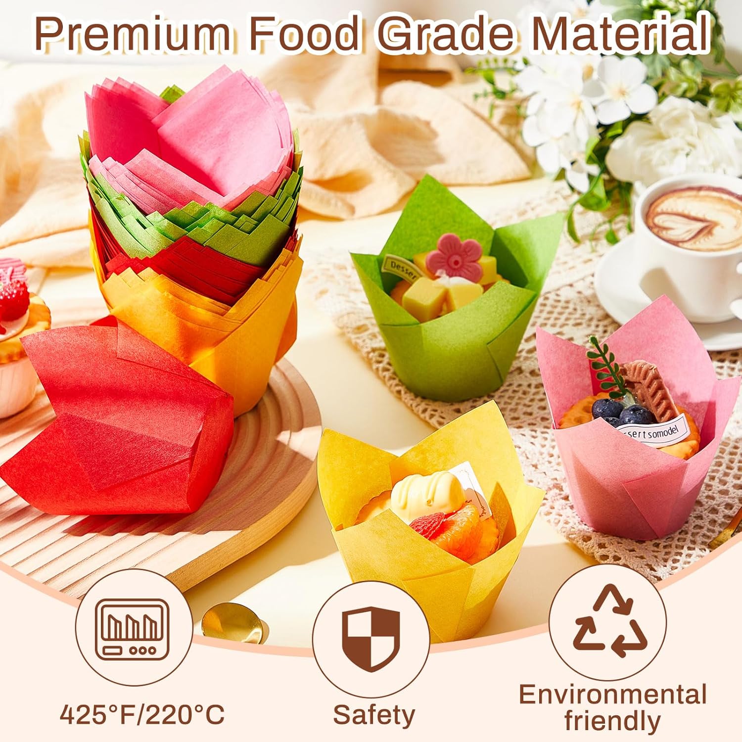 - Quality Greaseproof Paper: crafted with quality greaseproof paper, these tulip muffin liners offer grease resistance; Feel the difference in your baking experience as they can withstand high heat temperatures, avoid easy deformation or fading, and can be stored over a long period