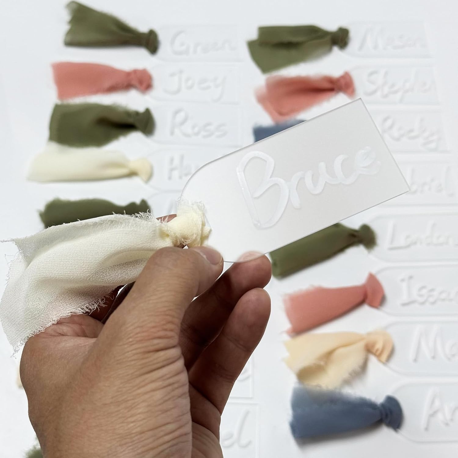 - 【High Quality】:Acrylic Frosted Card, the front of the frosted tag is frosted and the back is smooth and transparent. The acrylic cards with colorful ribbon are very exquisite and perfect for table decoration.