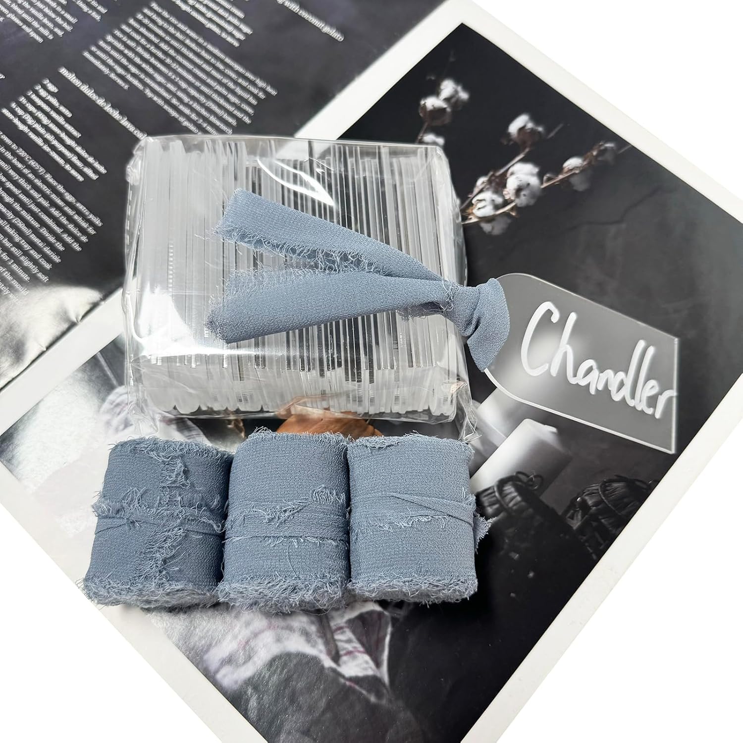 50Pcs Acrylic Place Card for Wedding Frosting Acrylic DIY Table Seating Cards Wedding Supplies with Blue Ribbon