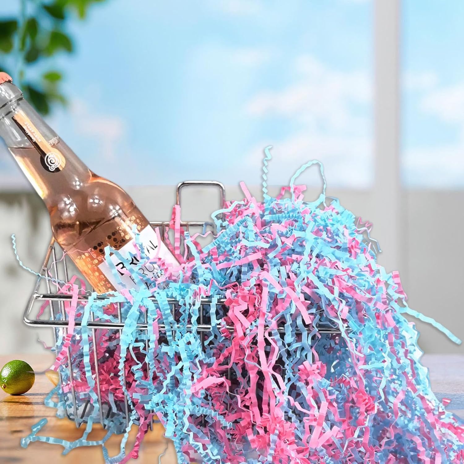 - 【Crinkle Cut Paper Shred】Display your products with fun and colorful Crinkle Cut Paper to create a memorable gift-giving experience with your tasteful choice of gift-wrapping fillers. Ensuring your gifts are beautifully presented. With 1LB Pink Blue of crinkle cut paper shred filler, you'll have plenty to fill those extra spaces in your packages, is suitably provides maximum protection for your gifts.