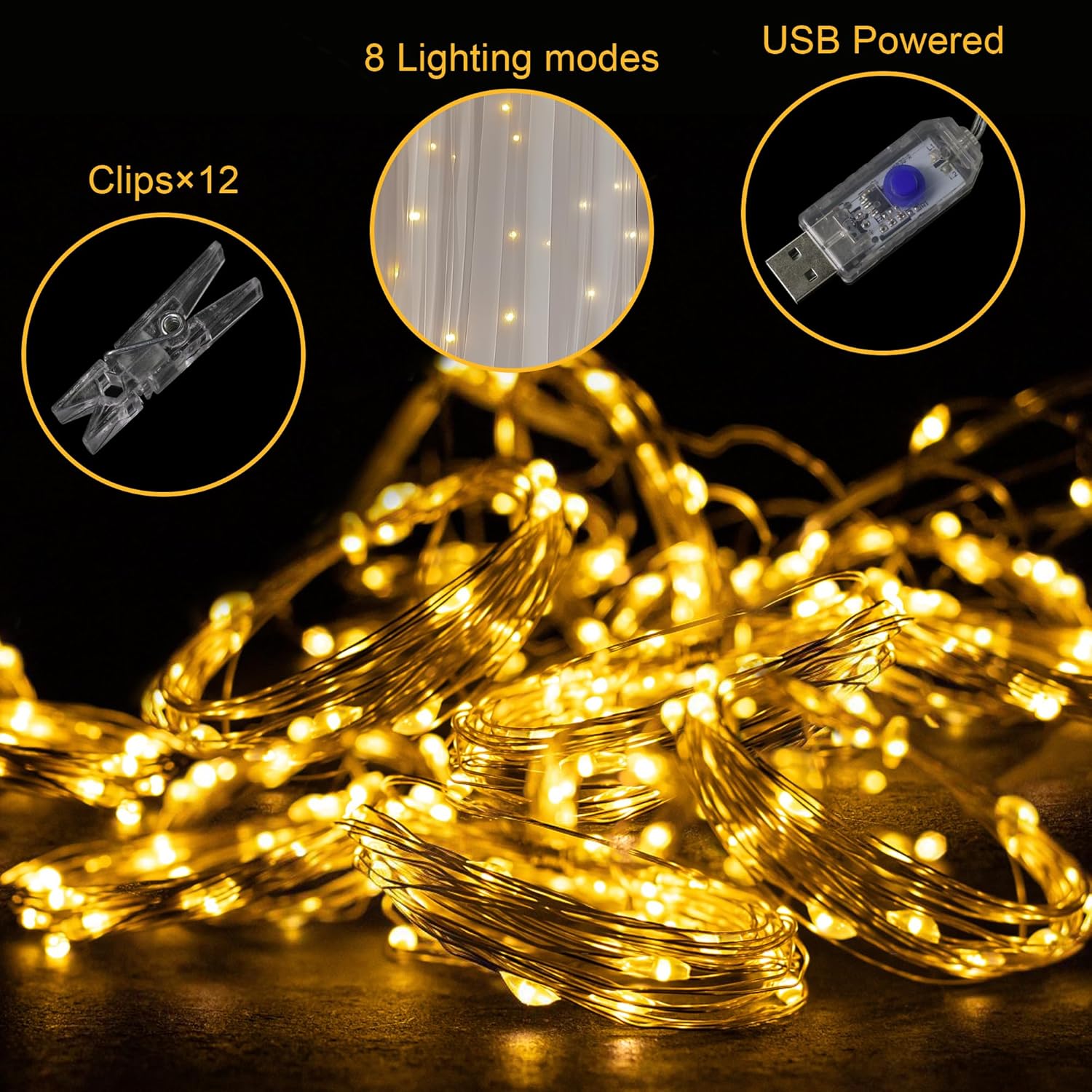 - Package Includes: The package includes 2 panels white sheer tulle backdrop curtains, each curtain backdrop is 5FT width and 10FT height. Also it includes a set of 10FT (10 strands) warm string light (USB Powered) and 12pcs transparent clips.