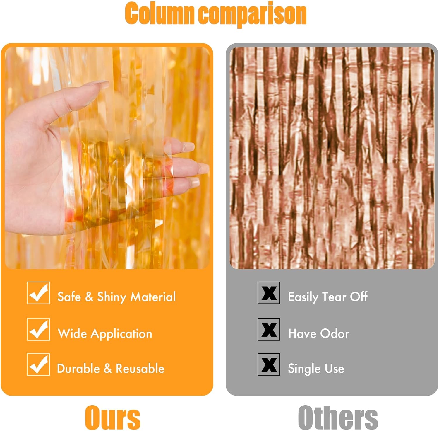 - NO HASSLE INSTALLATION - The foil curtain backdrop comes with double sided tape on the top, peel plastic strip off and it would be very easy to paste on smooth surfaces such as wall, window, table, door or anywhere you like. You can cut the foil curtain with scissors into the suitable Length, assemble the party streamers side by side to make the backdrop larger, or layer the backdrop curtains to get a thicker effect.
