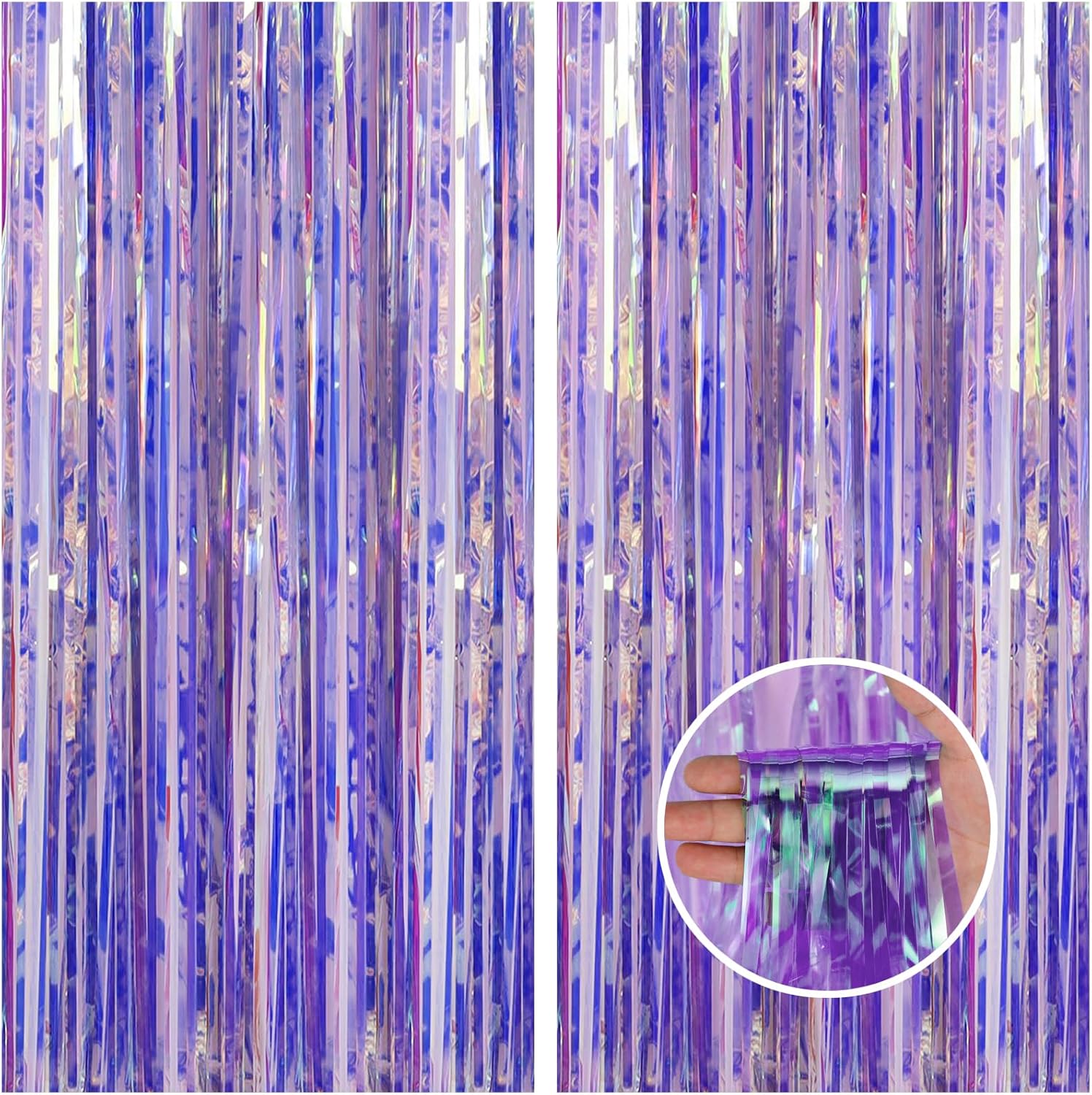 CANREVEL 2 Pack 3.2x6.5 Feet Iridescent Foil Fringe Backdrop Curtains, Clear Purple Tinsel Photo Booth Props Streamers Party Decorations for Birthdays Graduation, Mermaid, Halloween, Disco Party