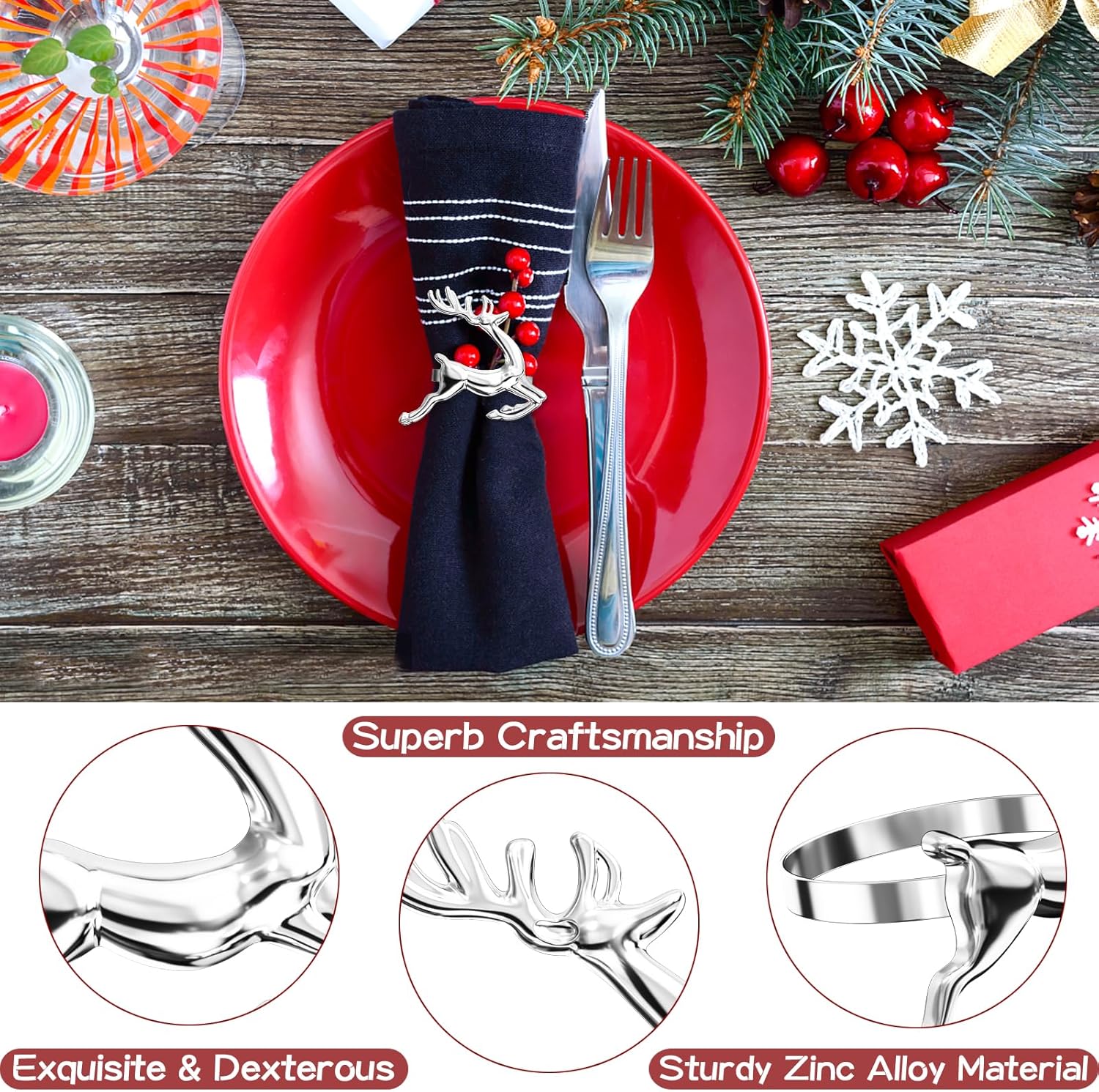 - Santa Bling Napkin Rings: You will receive silver deer napkins rings set of 6, simple and elegant, delicate and romantic, suitable for Christmas napkins cloth of different colors and materials. The reindeer Christmas decoration napkins rings could add more festive atmosphere to your Christmas table decorations for dinner party and become a highlight