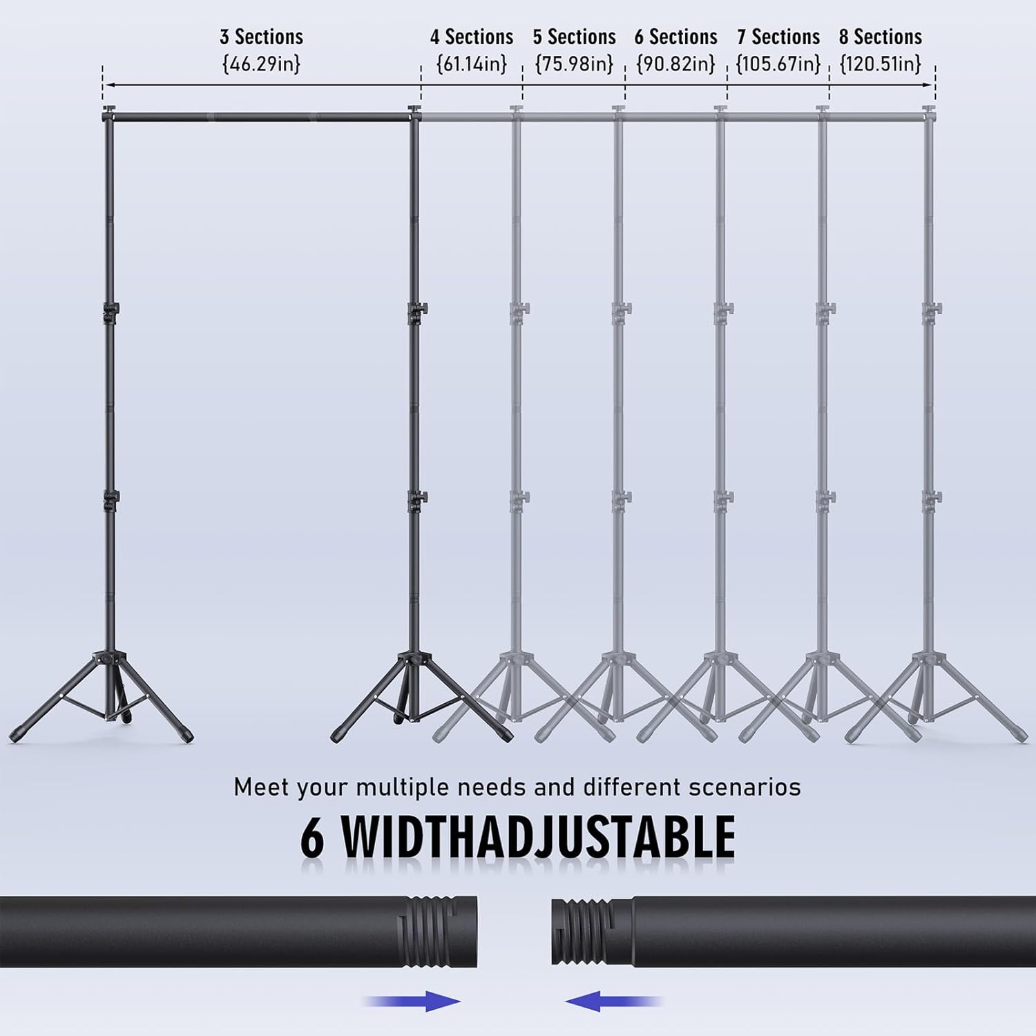 Backdrop Stand Kit - 6 Widths, 10x7.5ft Adjustable Background Stand for Parties & Studio Photography