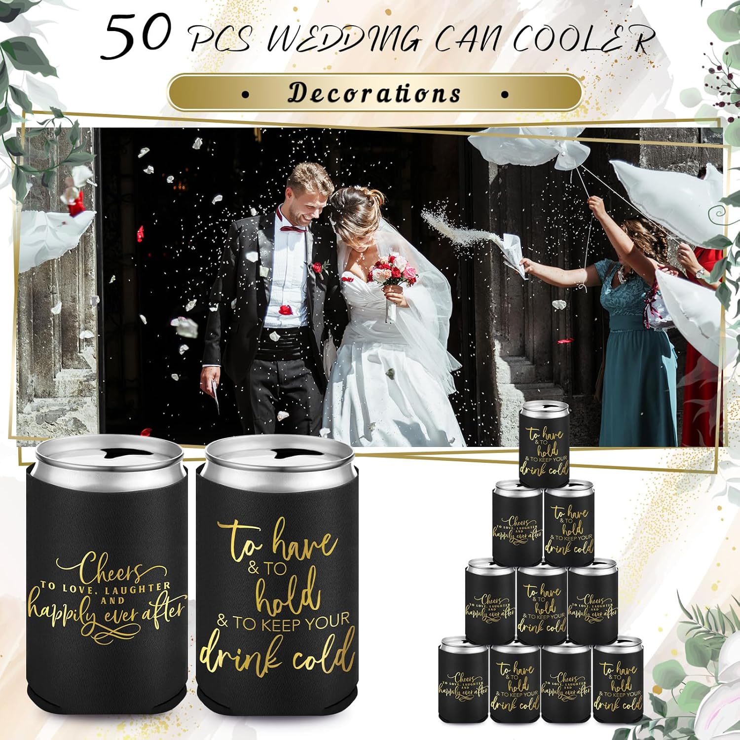 - Satisfying Party Package: our huge package containing 50 pieces of wedding can cooler decorations; Make every drink a celebration with our black and gold can coolers; They are suited to uplift the atmosphere at weddings, bridal showers, and bachelorette parties