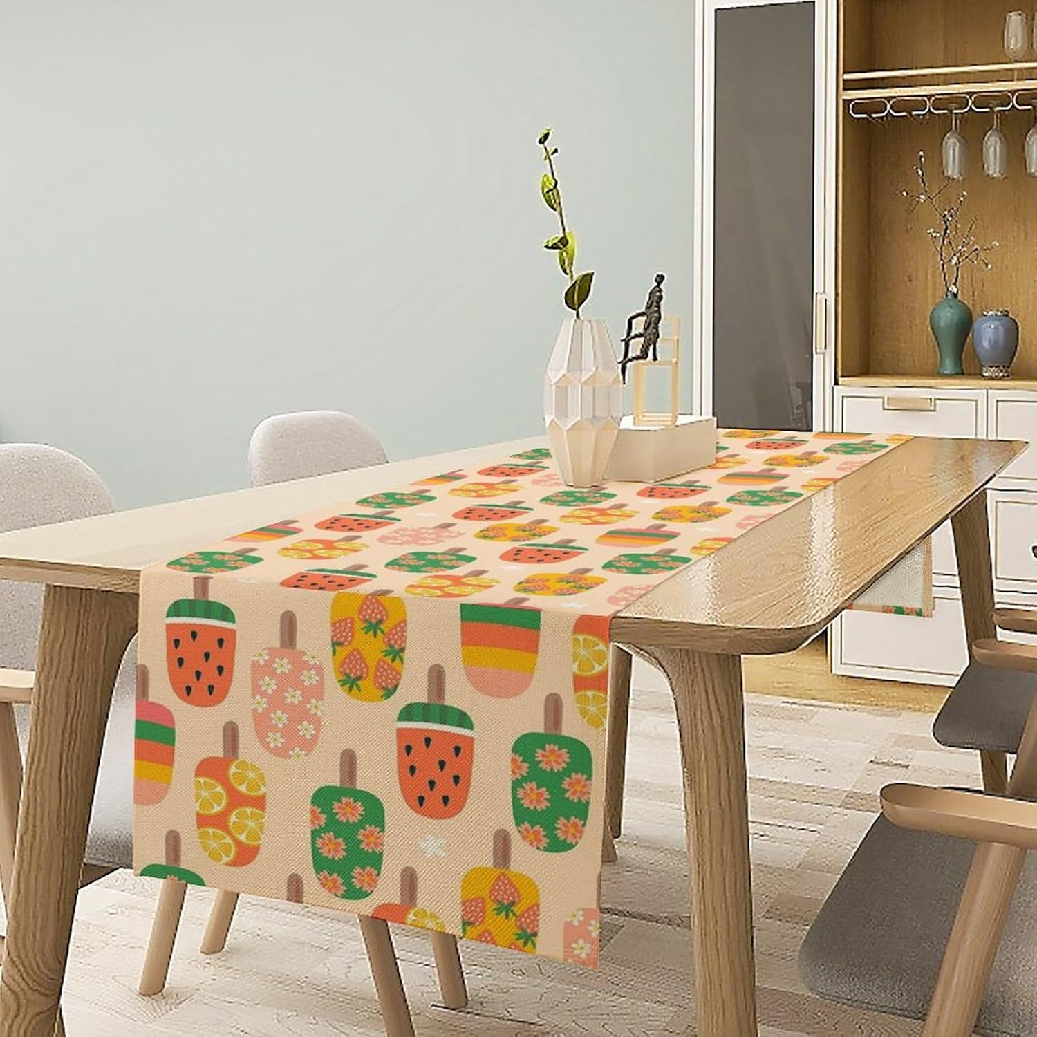 Summer Popsicles Table Runner, Colorful Cute Ice Cream Childish Seasonal Dinner Runner for Party Holiday Home Kitchen Dining Table Decor 13"x36"