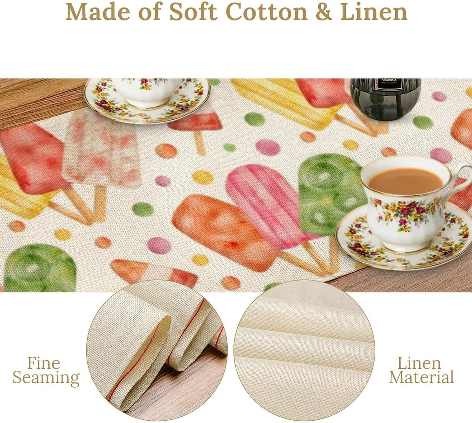 Summer Popsicles Table Runner, Watercolor Colorful Fruit Ice Cream Pops Berry Kiwi Cold Summer Sweet Seasonal Dinner Runner for Party Holiday Home Kitchen Dining Table Decor 13"x120"