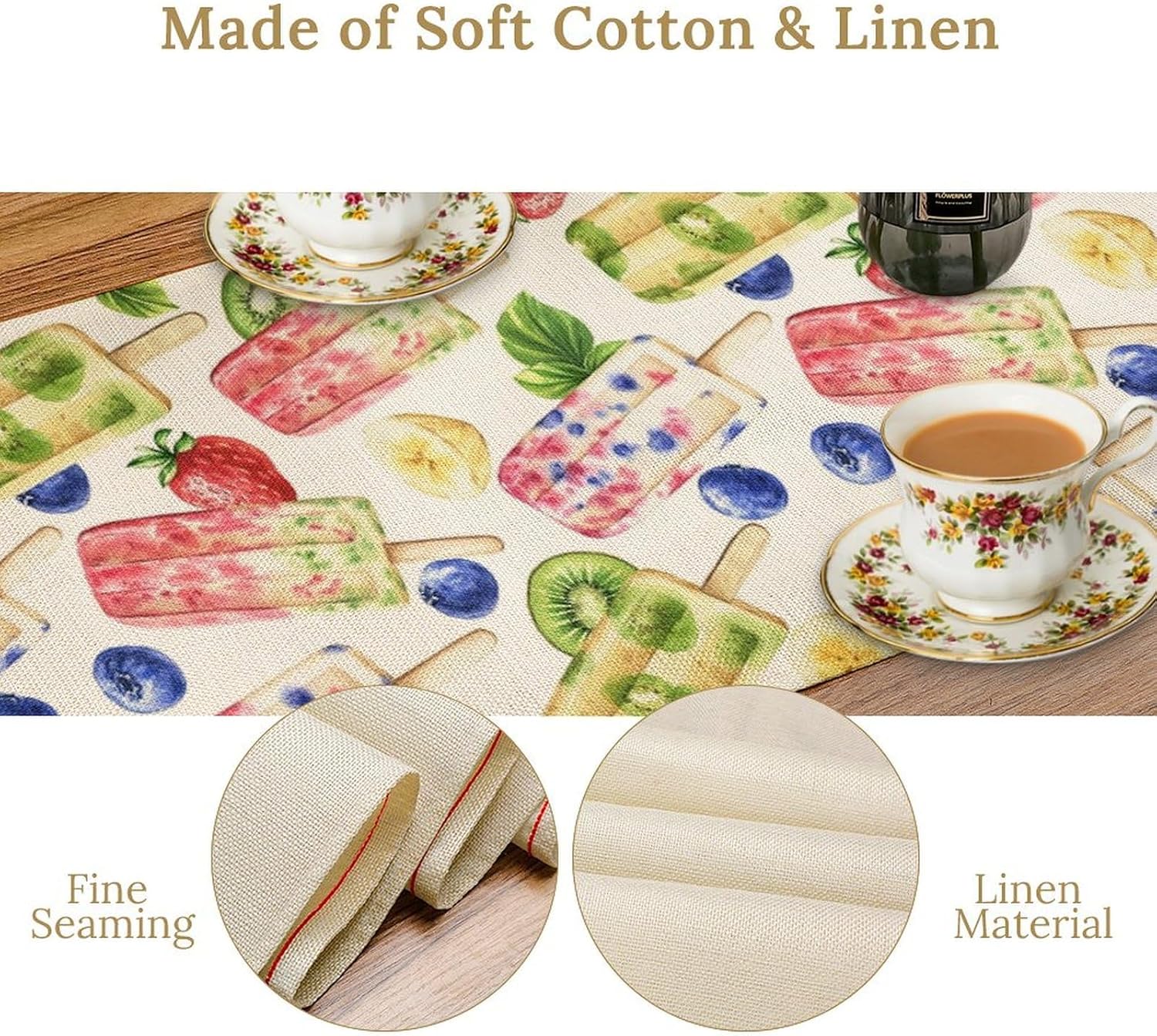 Ice Cream Table Runner, Watercolor Fruit Ice Popsicles Berry Kiwi Cold Summer Desserts Seasonal Dinner Runner for Party Holiday Home Kitchen Dining Table Decor 13"x120"
