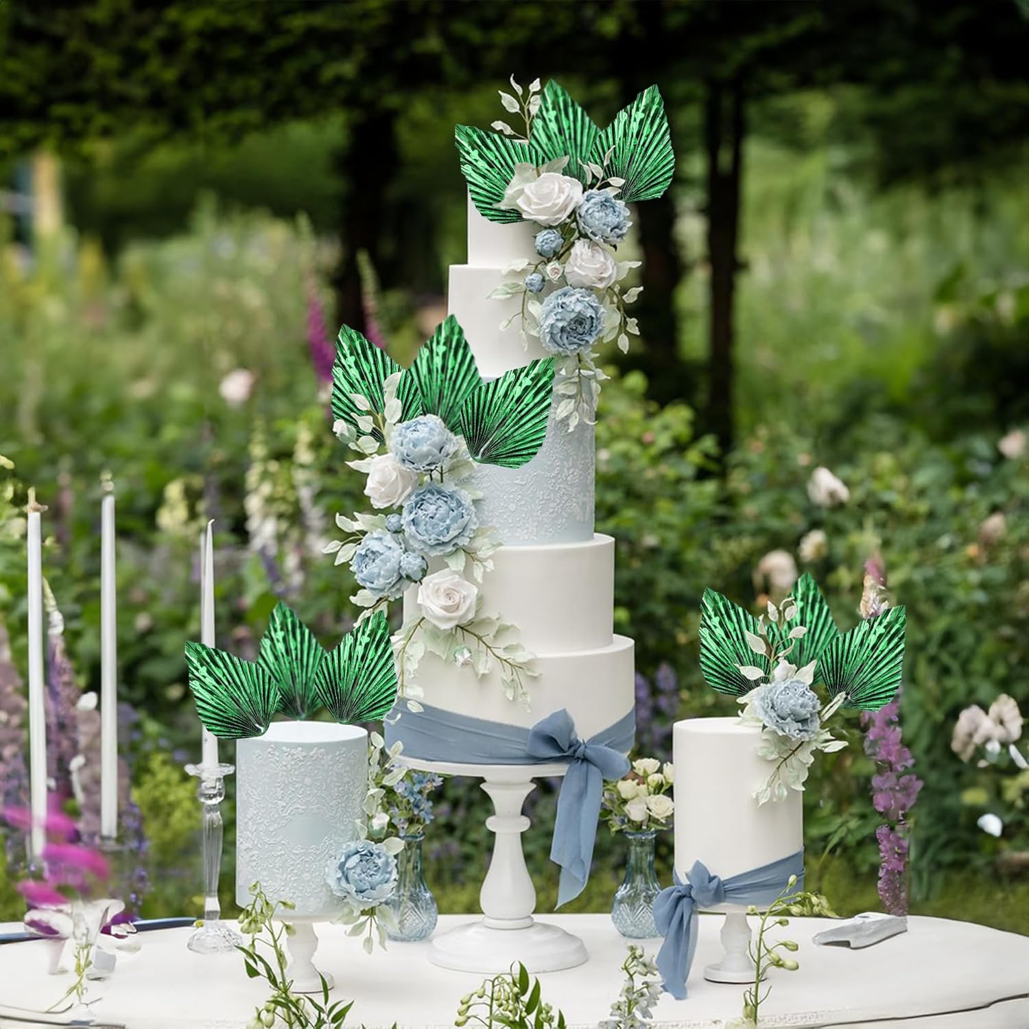 Ephlyn 6Pcs Paper Palm Leaves Fan Cake Toppers Palm Leaf Fan Cake Picks Craft DIY Fan Cupcake Toppers Palm Spear Leaves Cake Decorations for Baby Shower Wedding Birthday Party Supplies Bright Green