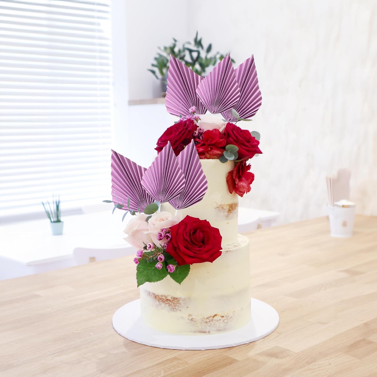 Ephlyn 6Pcs Paper Palm Fan Cake Topper Palm Spear Leaves Fan Cake Pick for DIY Craft Project Home Made Wedding Bridal Shower Birthday Anniversary Party Cake Decorations Purple
