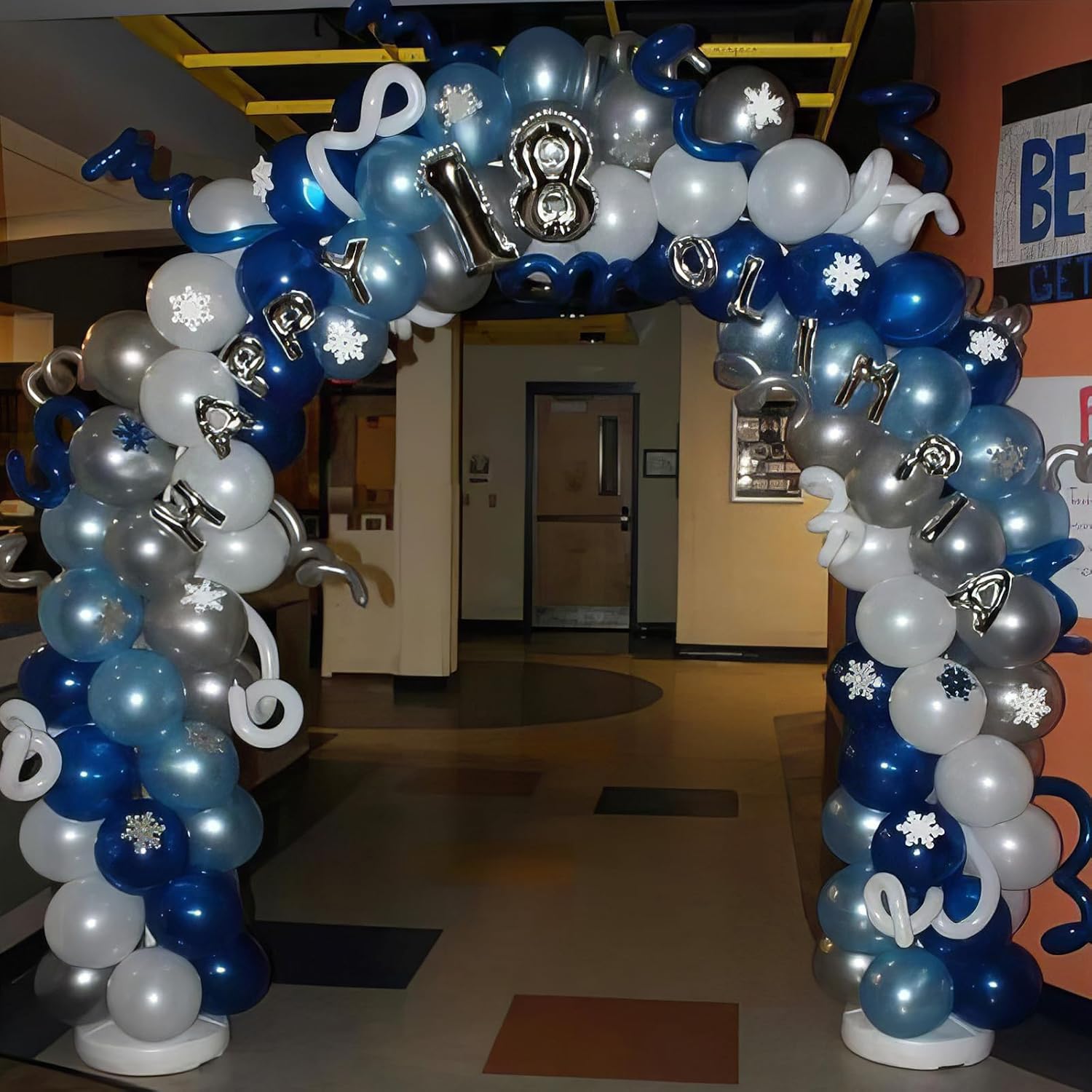 - 12 inch Blue and silver Balloons Set: 8pcs metallic blue balloons, 8pcs metallic silver balloons, 12pcs pearl white balloons, 10pcs star silver confetti balloons, 12pcs pearl light blue balloons, 1pcs silver ribbon in our party balloons set. From birthday to wedding, make your events unforgettable with our top-notch, reliable balloons that add a touch of elegance and fun.