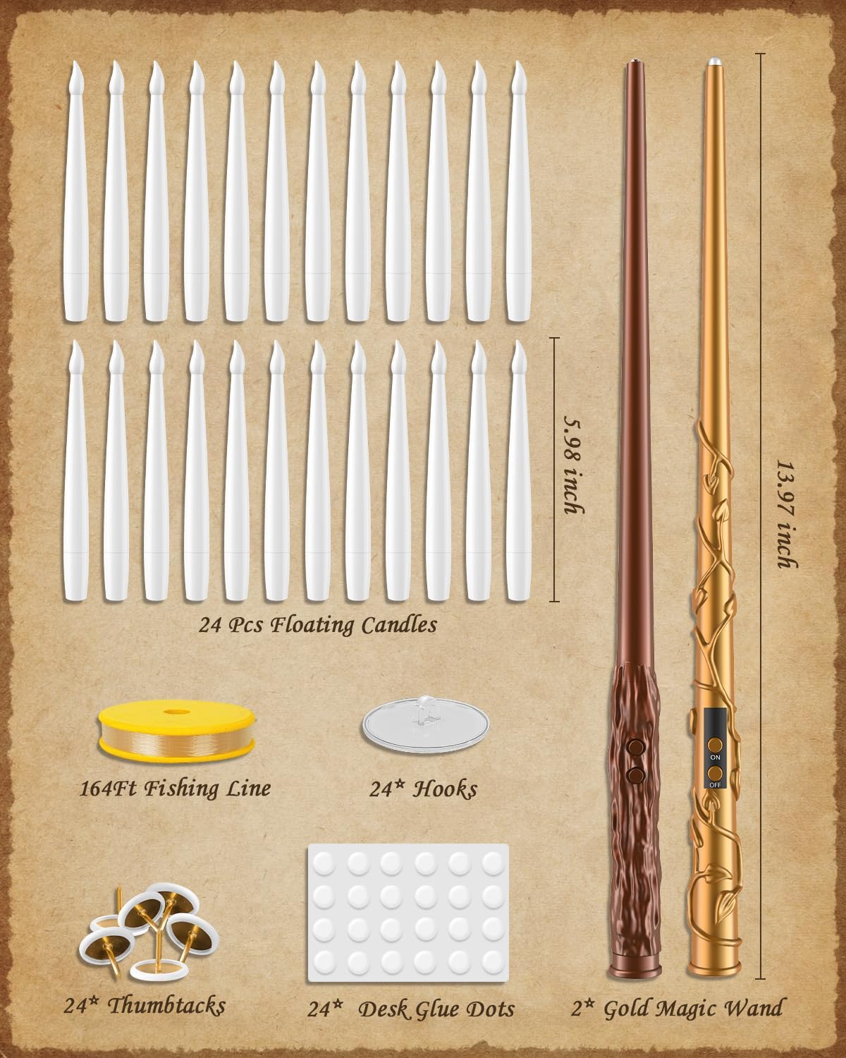 - š“šššš š®šššš ššš š·ššššššššš : Wrapped in a delightful gift box, these flameless candles come with a magical wand remote and are a thrilling surprise for kids! Perfect Halloween, Christmas, Easter, birthday, wedding, magical-themed parties, or any celebration gifts for kids and adults. Let the hanging candles, controlled by the mystical wand, ignite their imagination and transport them to a realm where magic comes alive!