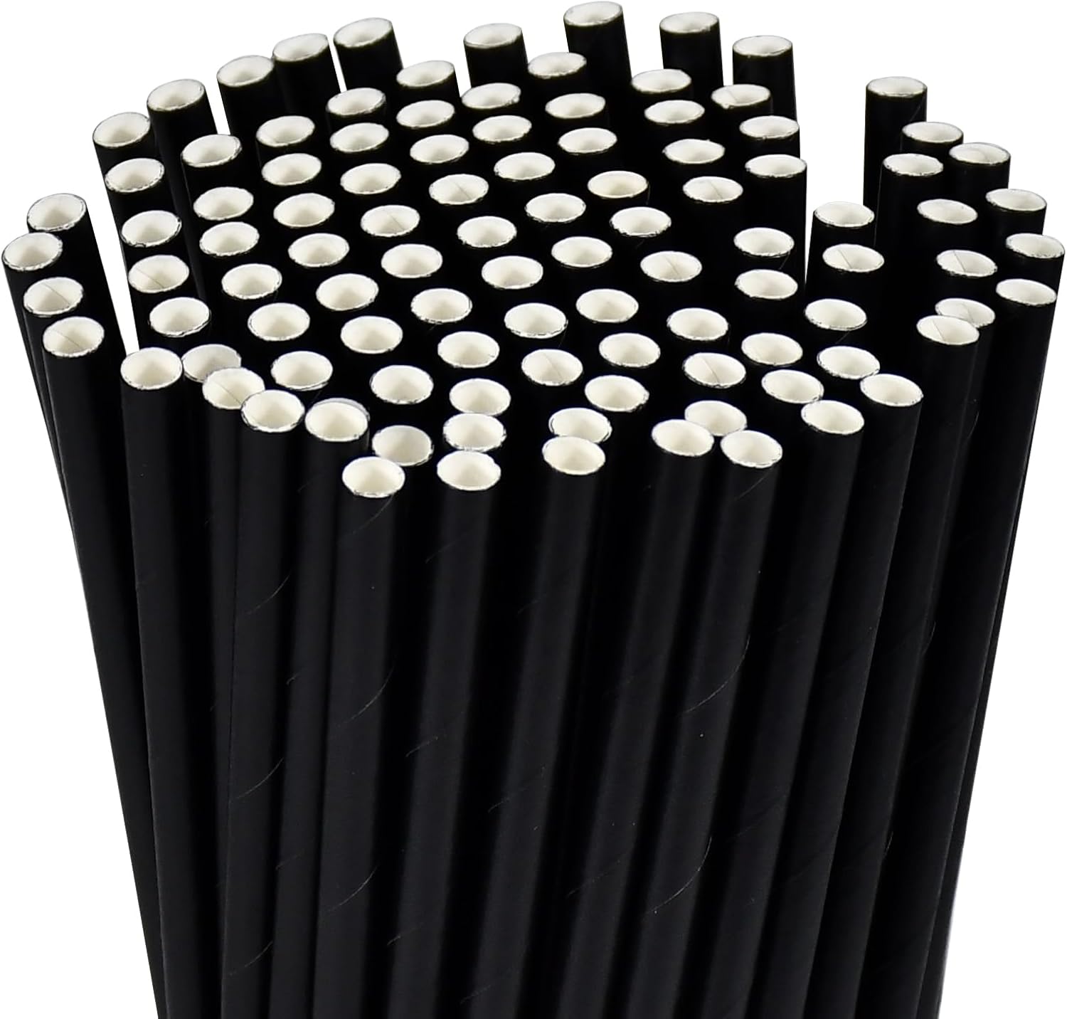 Disposable Black Paper Drinking Straws - 100 Counts, 7.75'' x 0.24'' - for Cocktaill, Coffee, Beverage, Bars, Restaurants