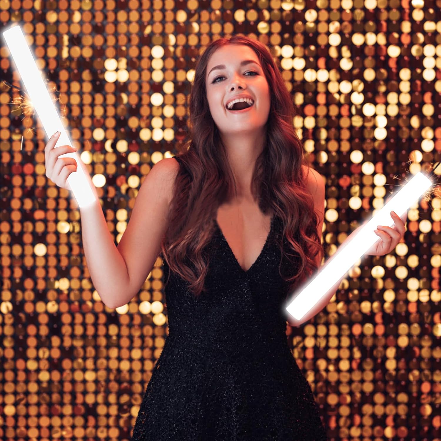 - Glow In the Dark Giant Foam Sticks: You will get 24 pack white light up foam glow sticks. Press the power button to switch between the 3 different light up modes: quick flashing, slow flashing and alternately flashing. These LED foam sticks boast vibrant colors, offering wider light coverage and ensuring the excitement party experience,bring tons of joy for you and your families. Perfect for theme music festivals, birthday, camping, clubs, shows, goodie bag or stocking stuffer and more