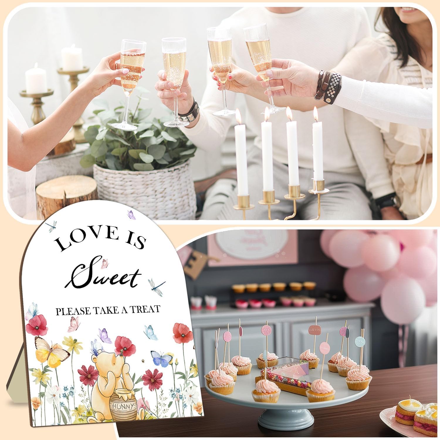 Winnie Decor Love is Sweet Sign, Floral Butterfly Decor Bridal Shower Welcome Sign, Classic Pooh Wedding Sign Bridal Shower Favors for Guests, Love is Sweet Please Take A Treat Sign 9 * 11IN