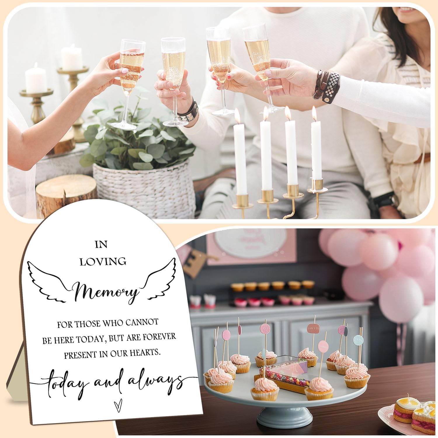 Memorial Table Sign for Bridal Shower, In Loving Memory Wooden Sign with Stand, Minimalist Decor for Wedding Reception, Event Party Favor Supplies 9 * 11IN