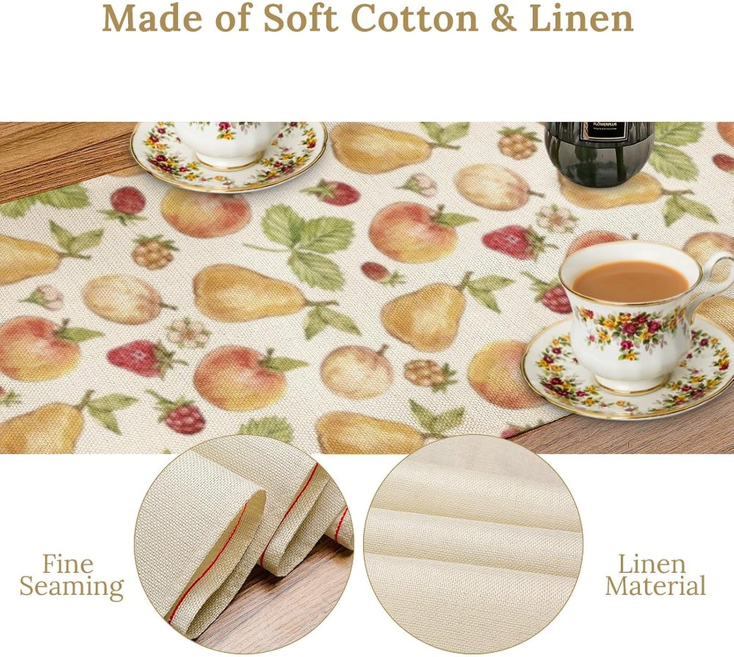 Vintage Spring Summer Fruit Table Runner Watercolor Pear Strawberry Leaves Dinner Runner for Farmhouse Party Holiday Home Kitchen Dining Table Decor 13x36