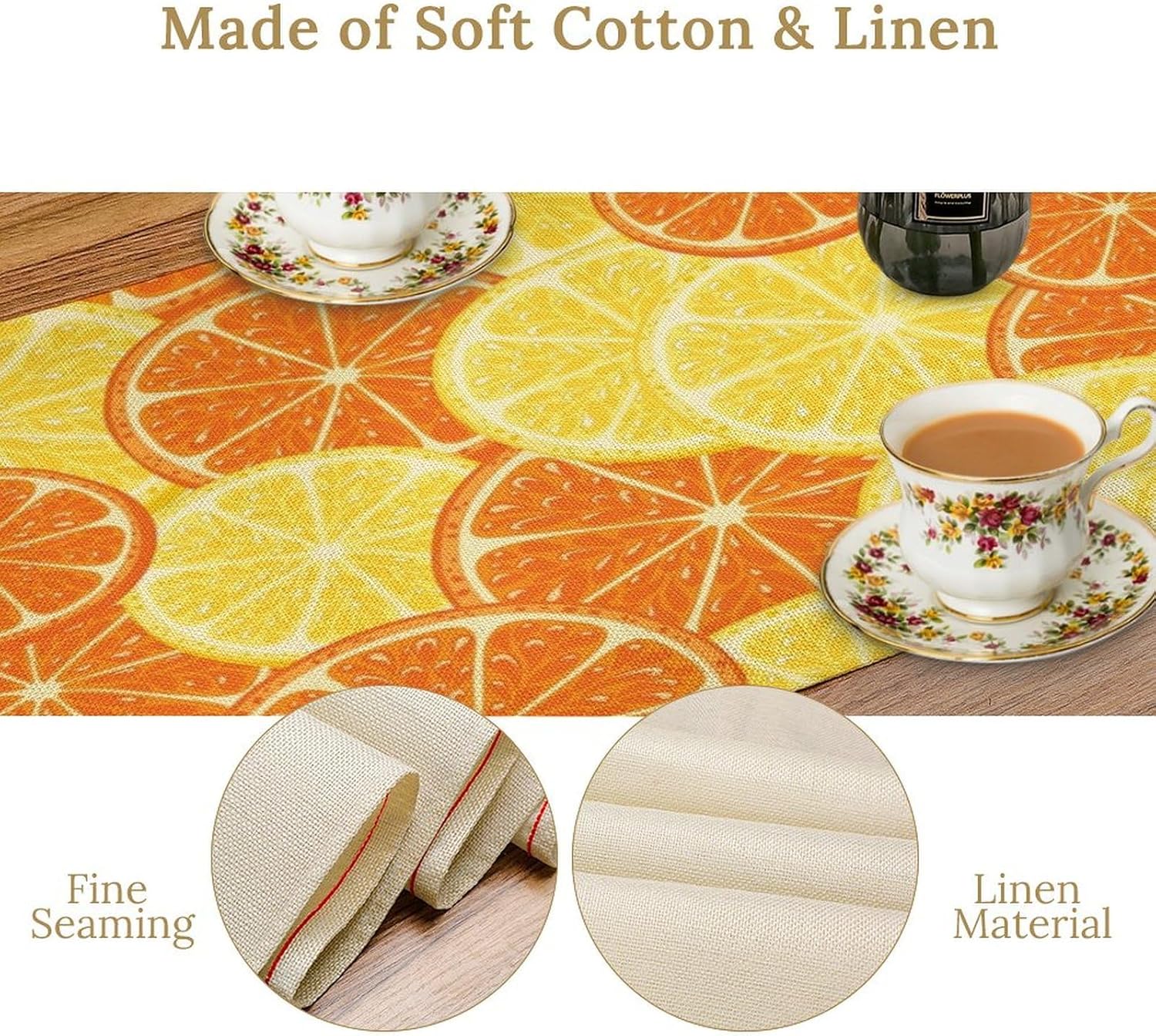 Orange Lemon Table Runner Spring Summer Orange Lemon Slices Botanical Fruit Dinner Runner for Farmhouse Baby Shower Party Holiday Home Kitchen Dining Table Decor 13x108