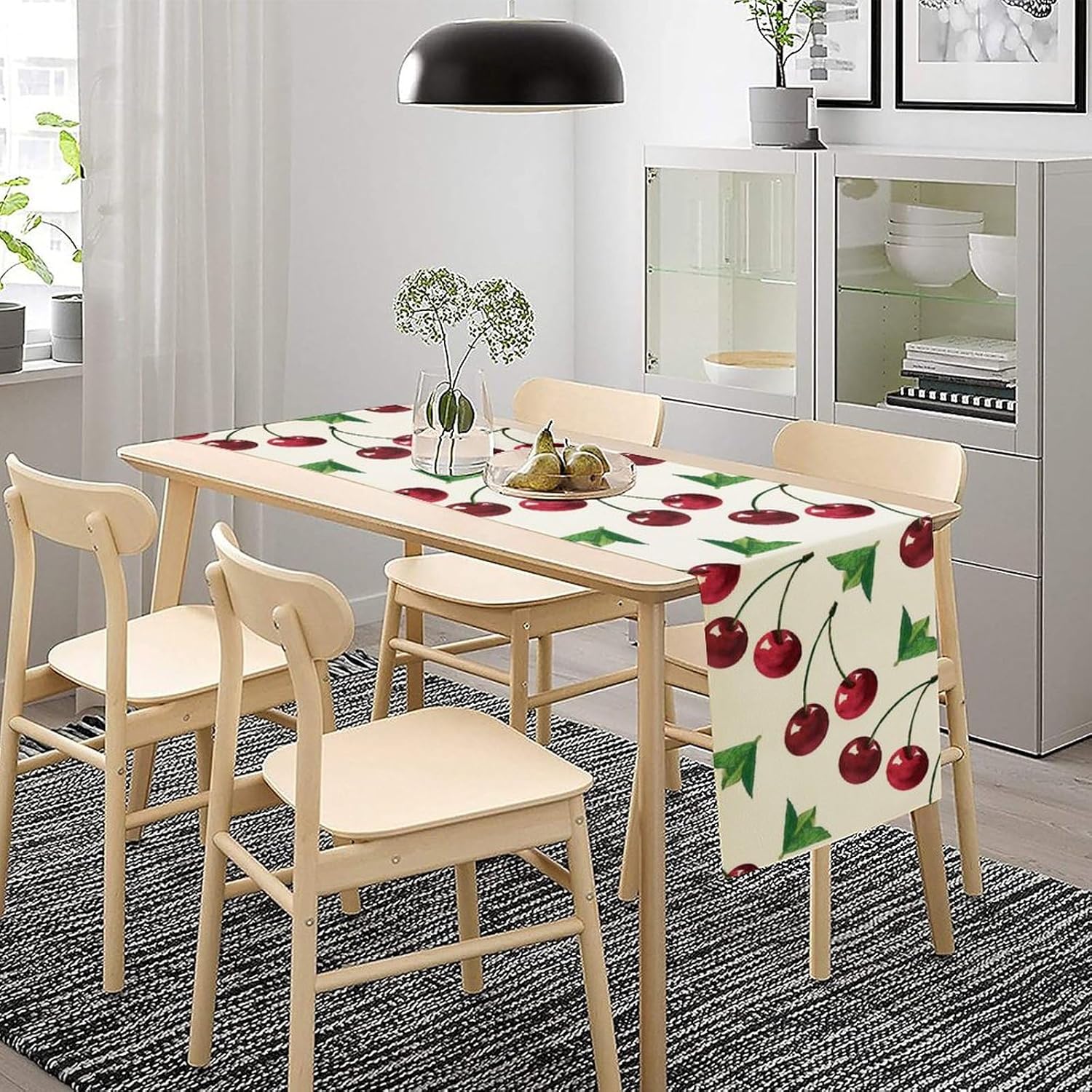 Red Cherry Table Runner Watercolor Tropical Fruit Spring Summer Wild Berry Dinner Runner for Girl Baby Party Holiday Home Kitchen Dining Table Decor 13x108